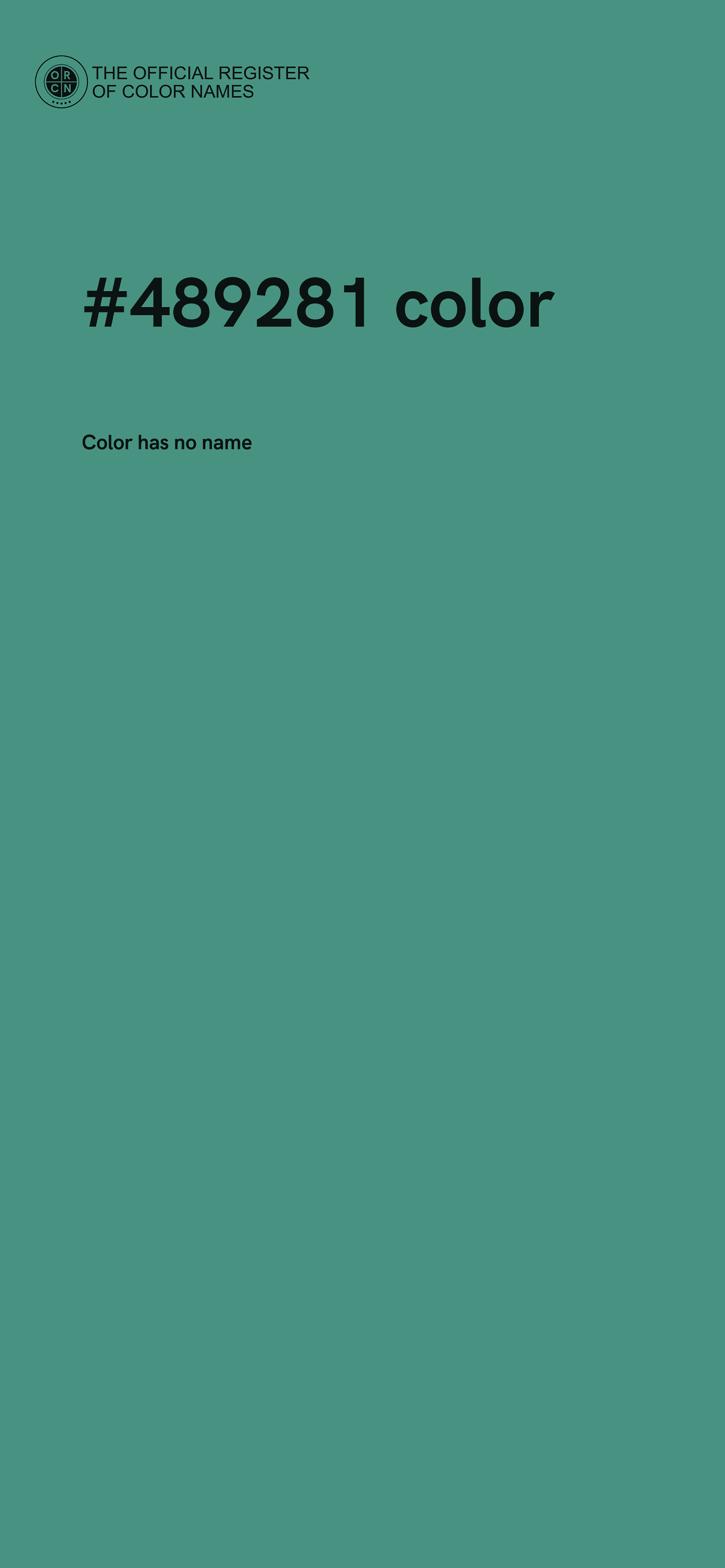 The digital color HEX #489281 belongs to the Cyan Color Family featuring Mild Saturation (Saturation Family) and Light (Brightness Family).