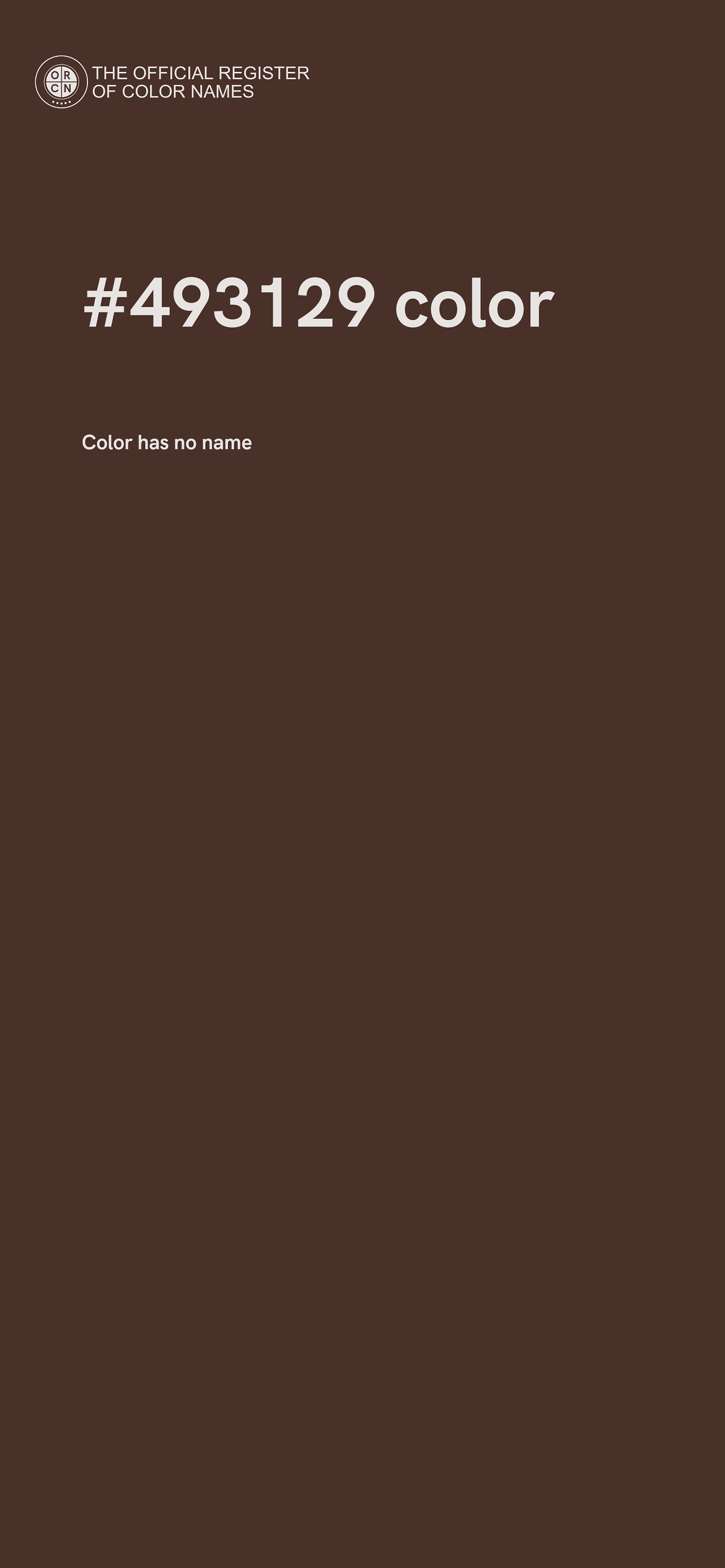 The digital color HEX #493129 belongs to the Orange Color Family featuring Mild Saturation (Saturation Family) and Dark (Brightness Family).