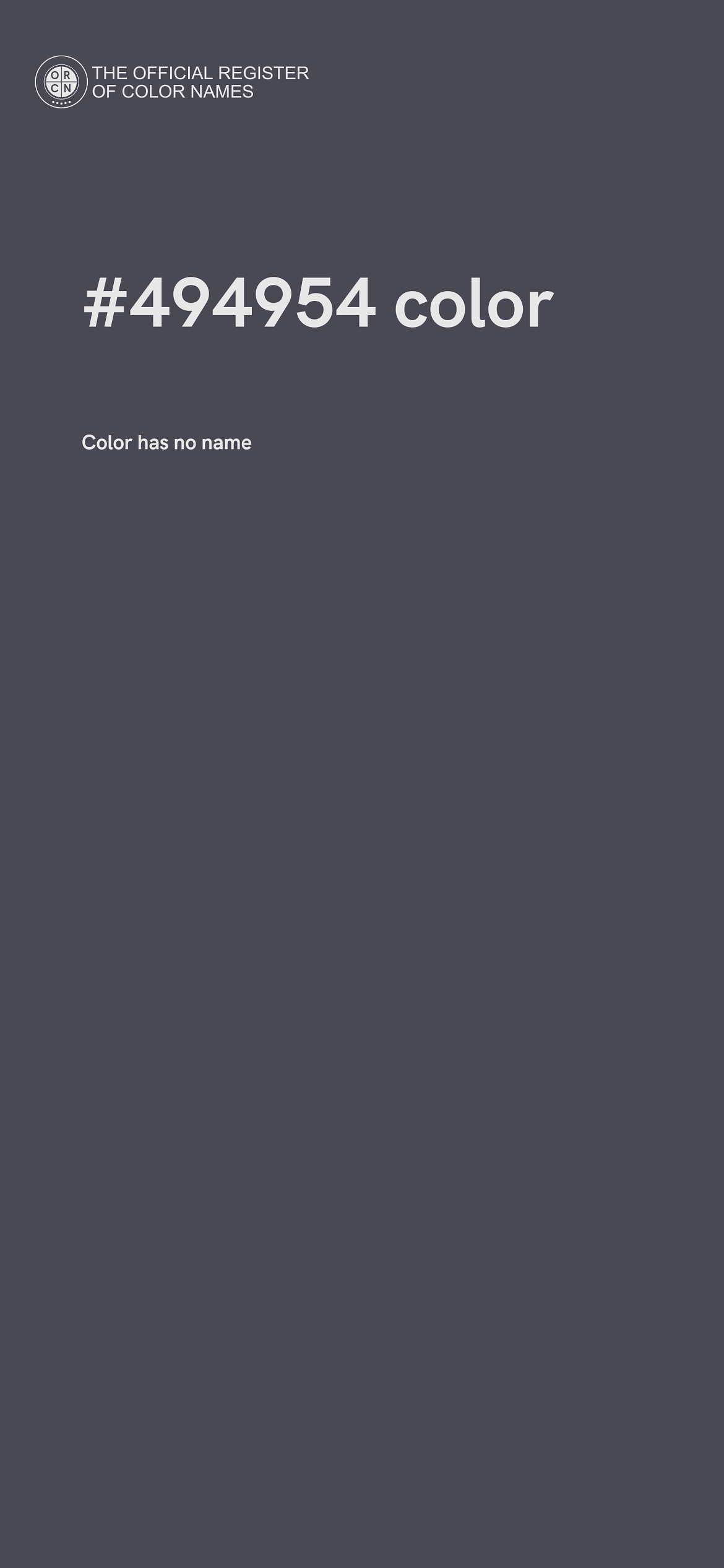 For printing in non digital world, #494954 is represented in CMYK as 4 Cyan, 4 Magenta, 0 Yellow, and 67 Black (Key) (C:4 M:4 Y:0 K:67).