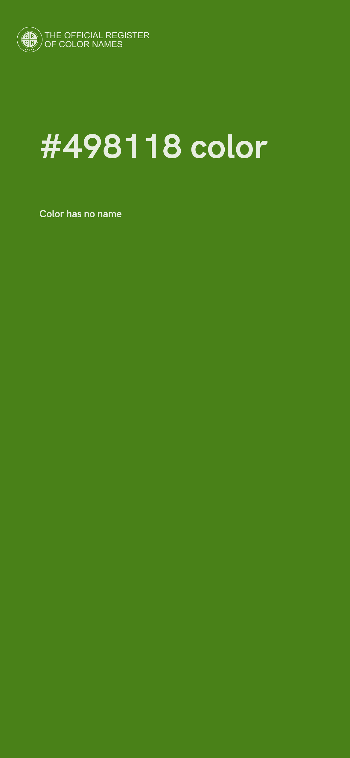 The digital color HEX #498118 belongs to the Chartreuse Color Family featuring High Saturation (Saturation Family) and Neutral (Brightness Family).