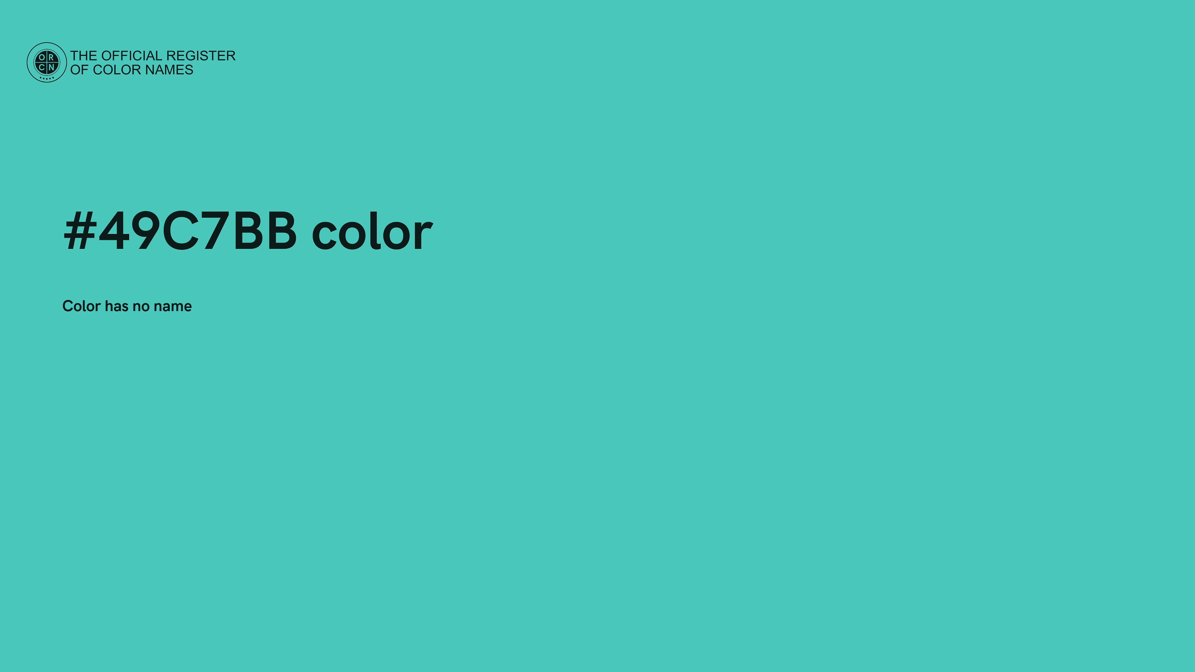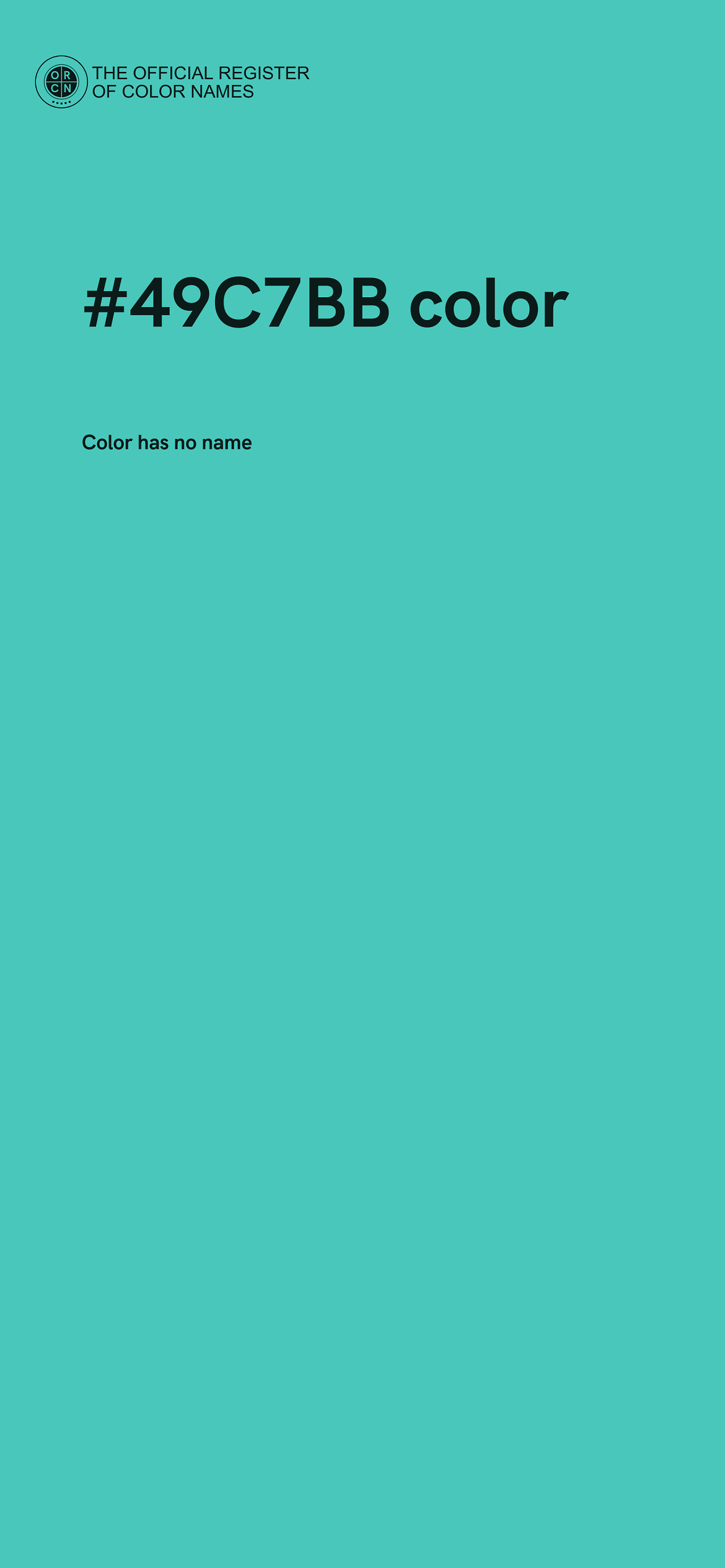 The digital color HEX #49C7BB belongs to the Cyan Color Family featuring Moderate Saturation (Saturation Family) and Light (Brightness Family).