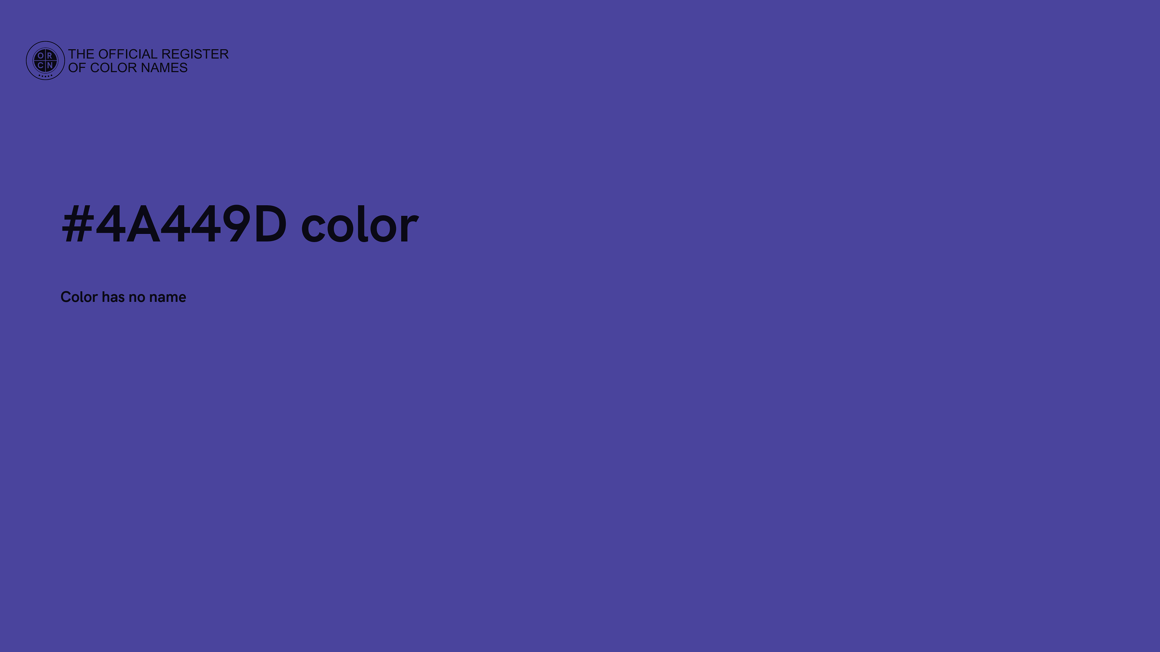The digital color HEX #4A449D belongs to the Blue Color Family featuring Moderate Saturation (Saturation Family) and Light (Brightness Family).