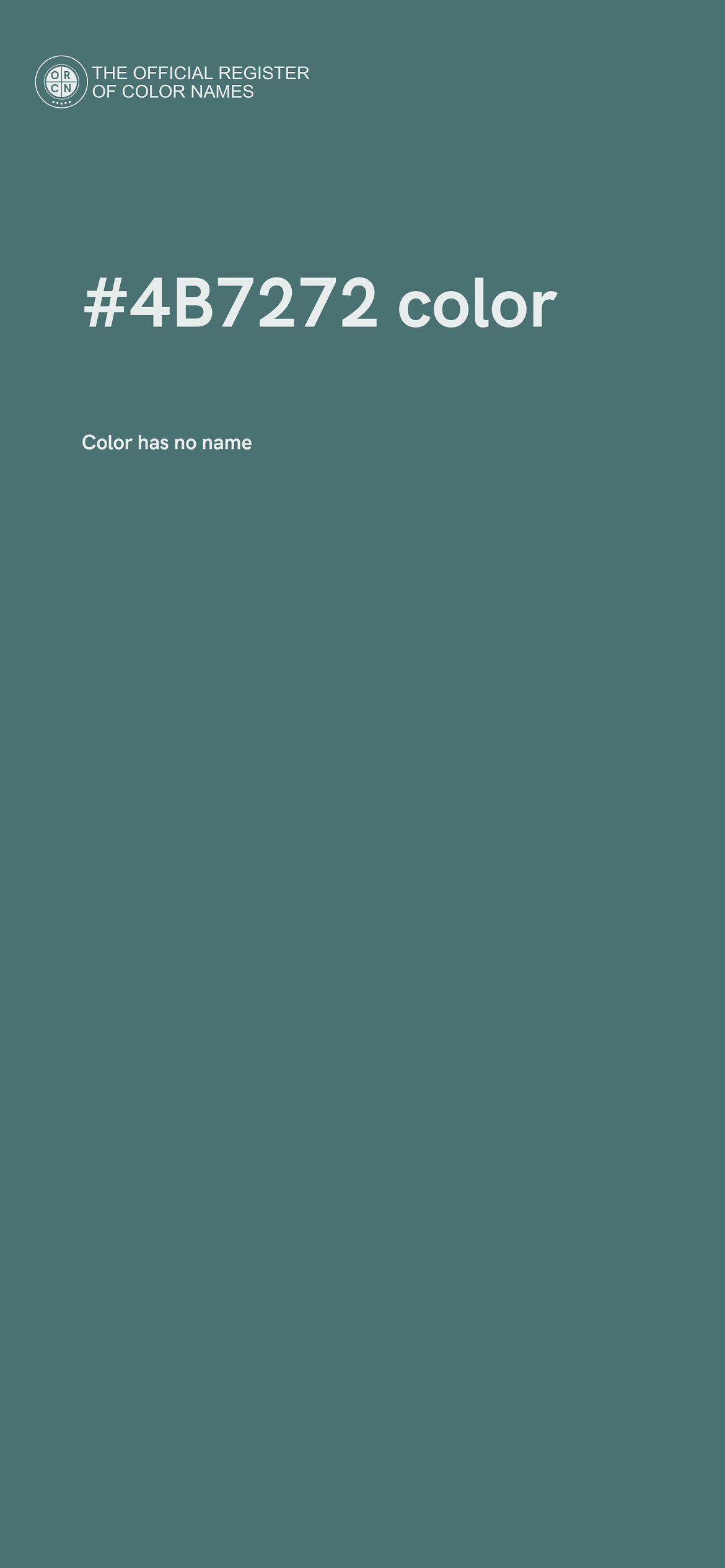 The digital color HEX #4B7272 belongs to the Cyan Color Family featuring Low Saturation (Saturation Family) and Neutral (Brightness Family).