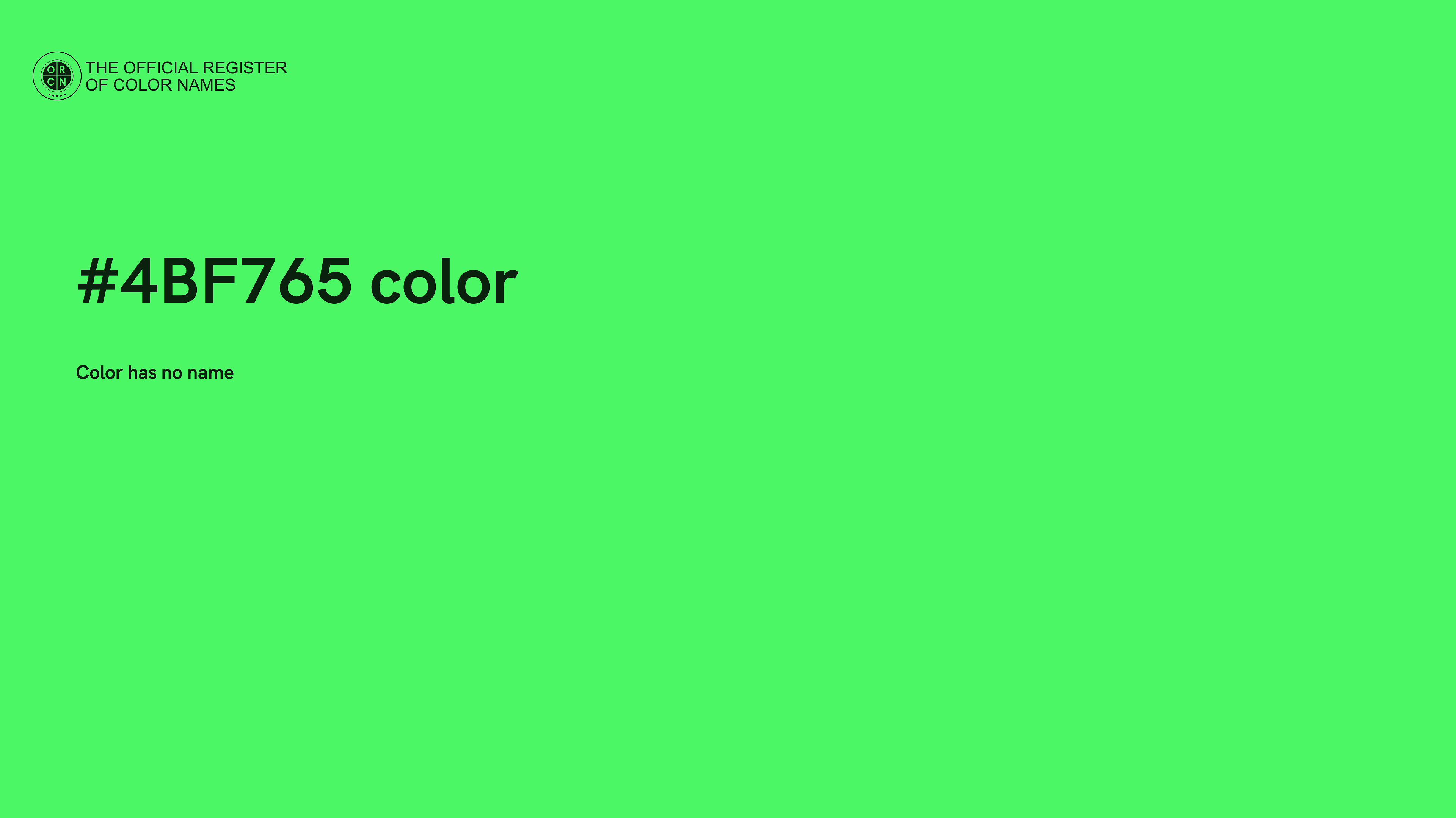 The digital color HEX #4BF765 belongs to the Green Color Family featuring Full Saturation (Saturation Family) and Very Light (Brightness Family).