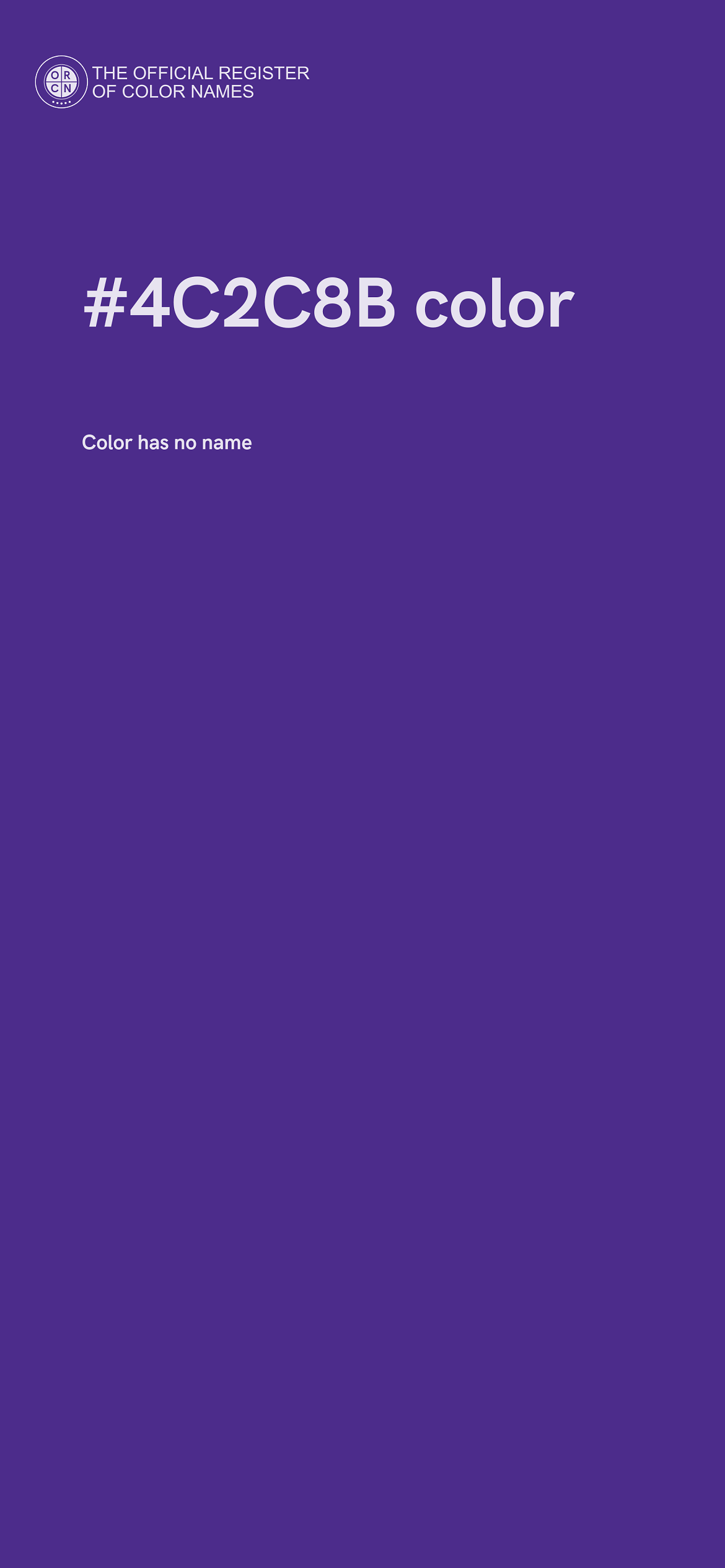 The digital color HEX #4C2C8B belongs to the Violet Color Family featuring Moderate Saturation (Saturation Family) and Neutral (Brightness Family).