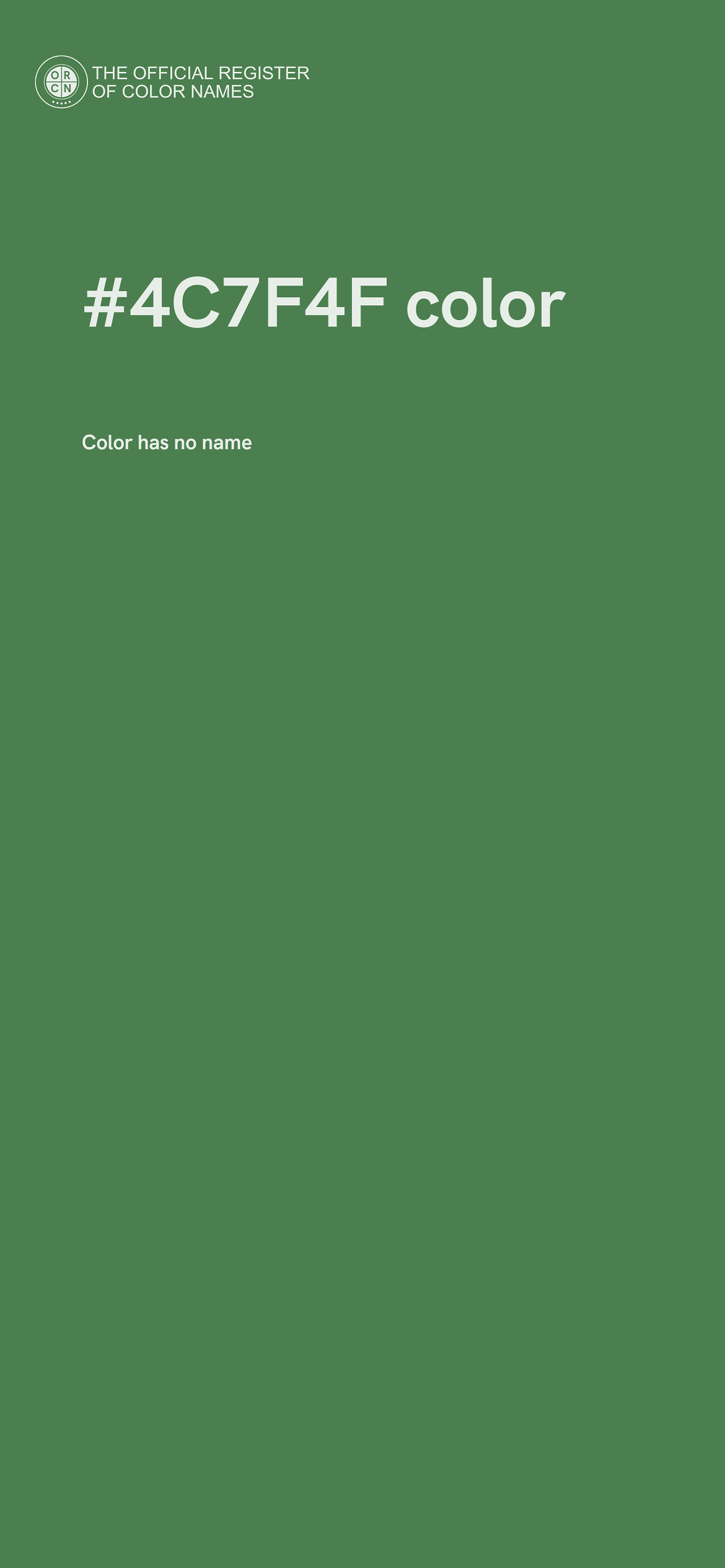 The digital color HEX #4C7F4F belongs to the Green Color Family featuring Mild Saturation (Saturation Family) and Light (Brightness Family).