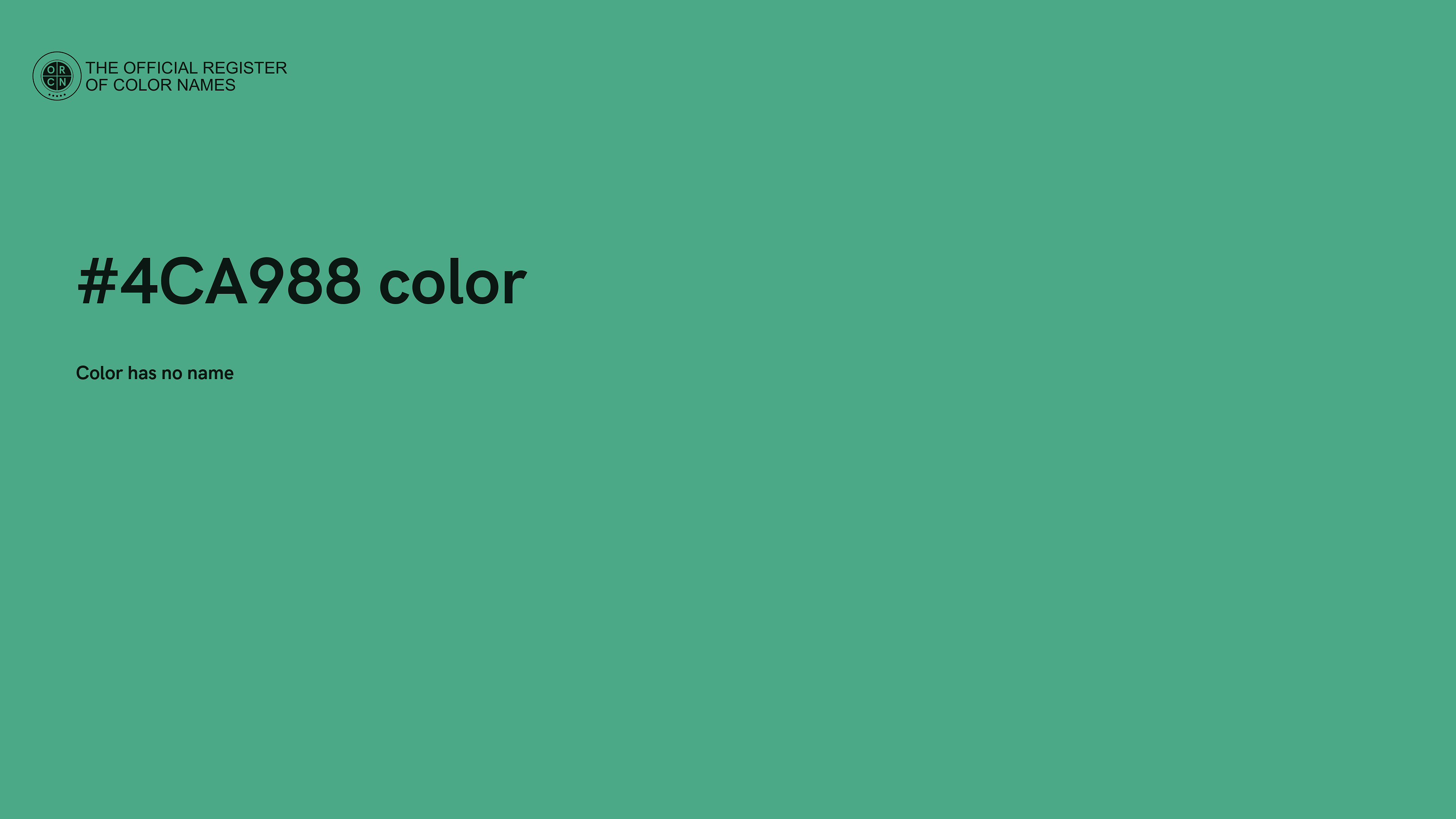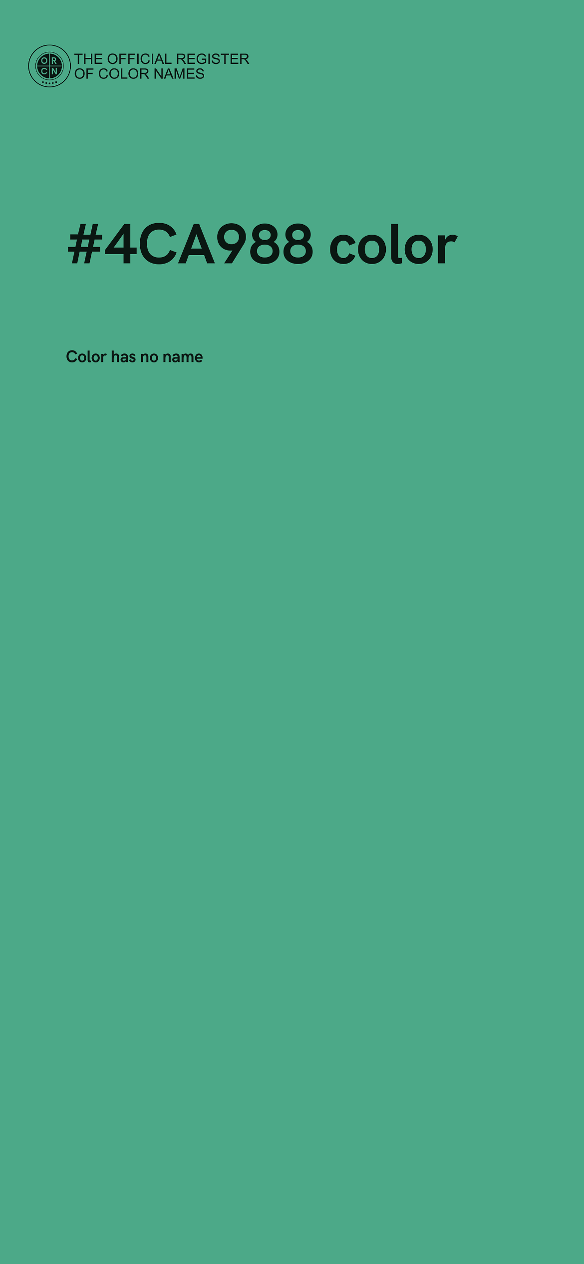 The digital color HEX #4CA988 belongs to the Spring Green Color Family featuring Mild Saturation (Saturation Family) and Light (Brightness Family).