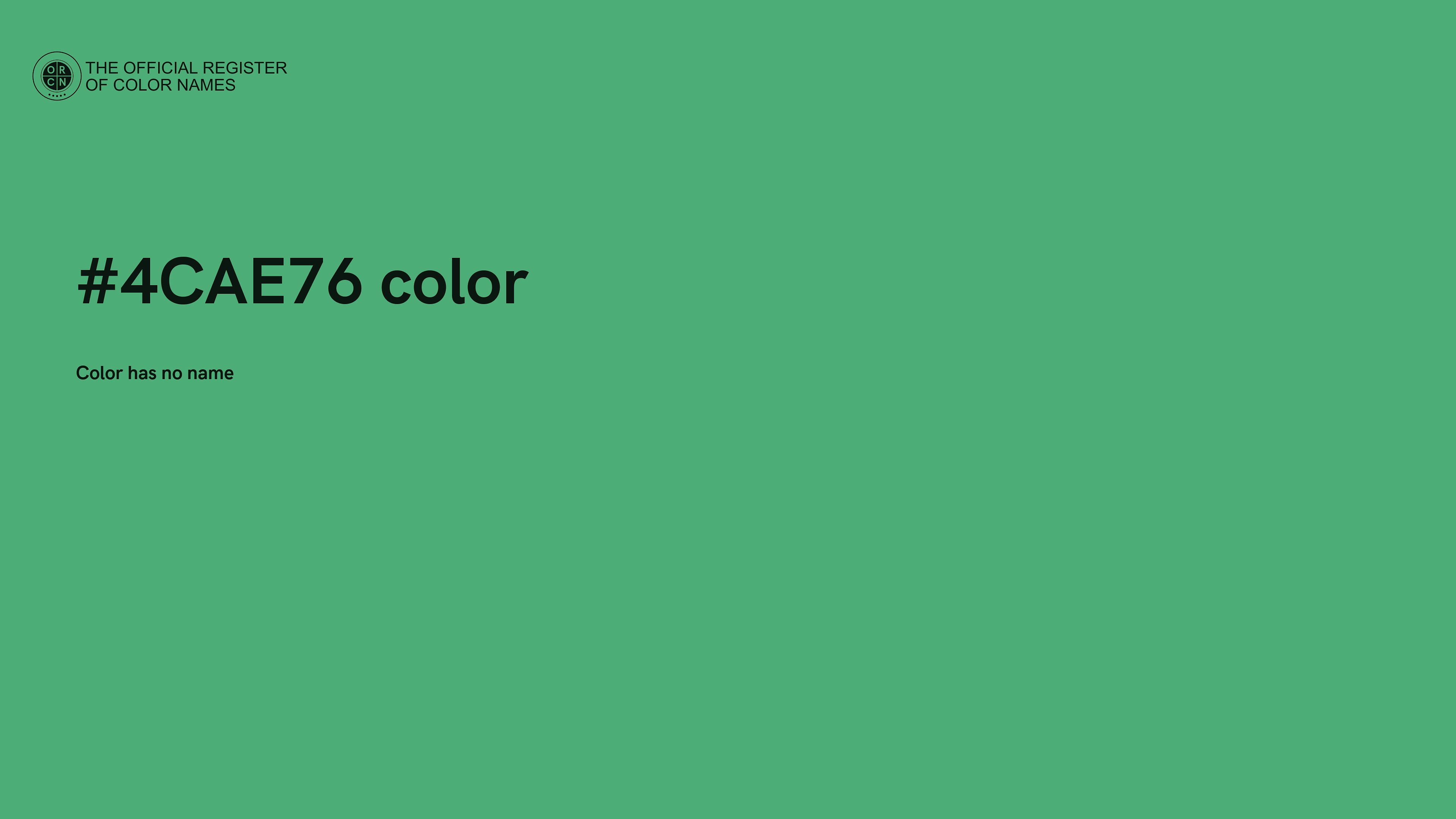 The digital color HEX #4CAE76 belongs to the Spring Green Color Family featuring Mild Saturation (Saturation Family) and Light (Brightness Family).