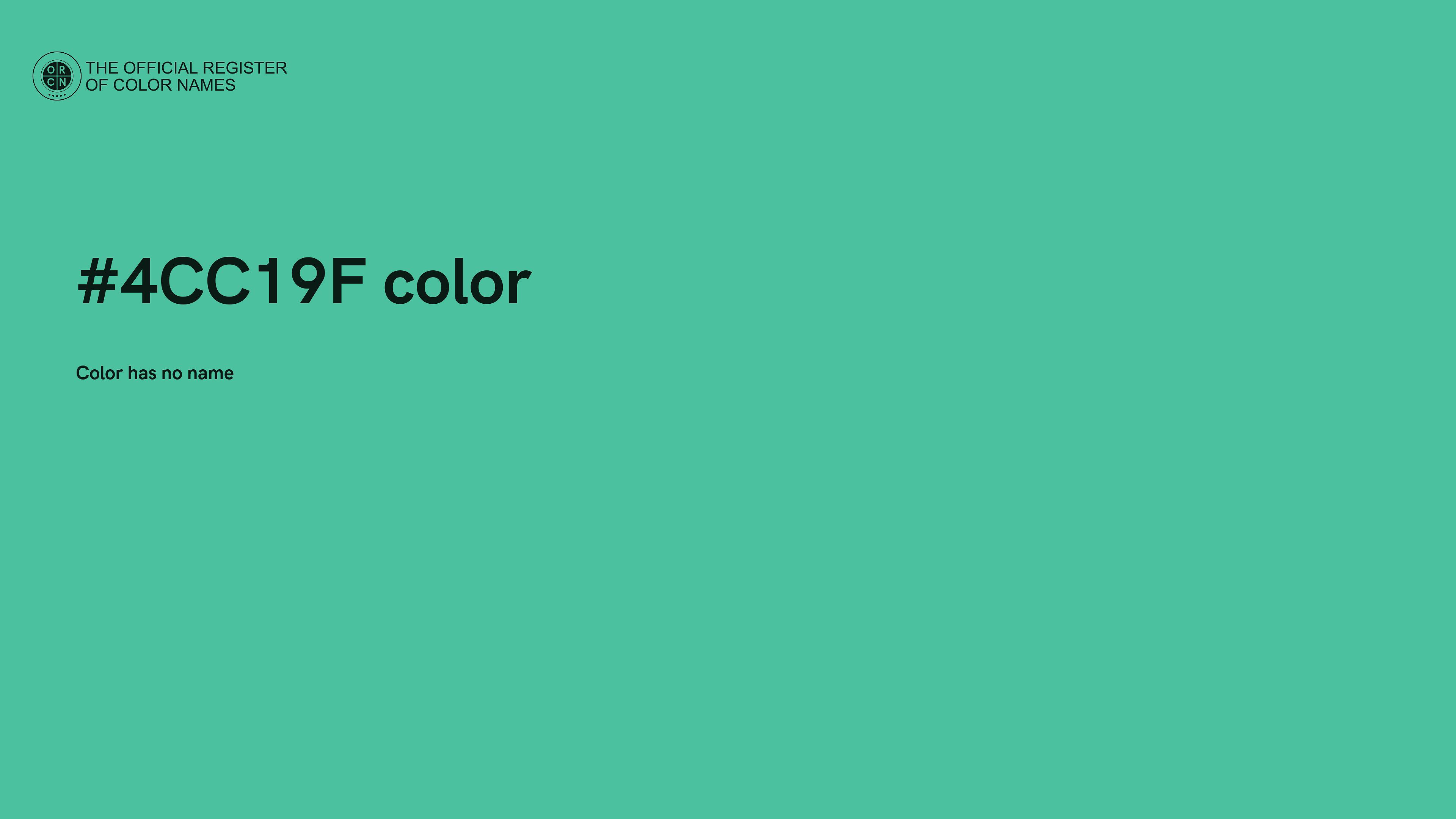 The digital color HEX #4CC19F belongs to the Spring Green Color Family featuring Moderate Saturation (Saturation Family) and Light (Brightness Family).