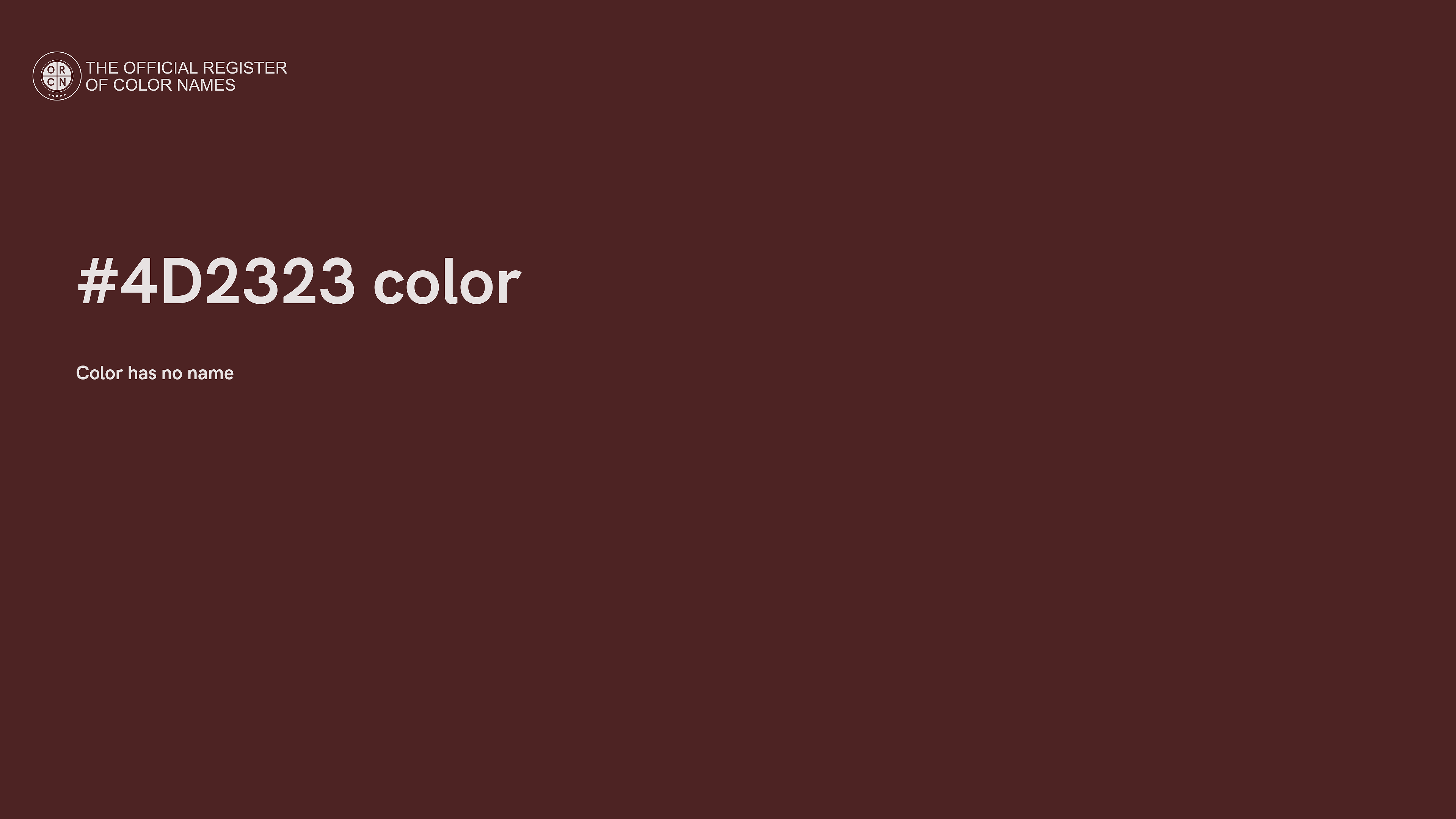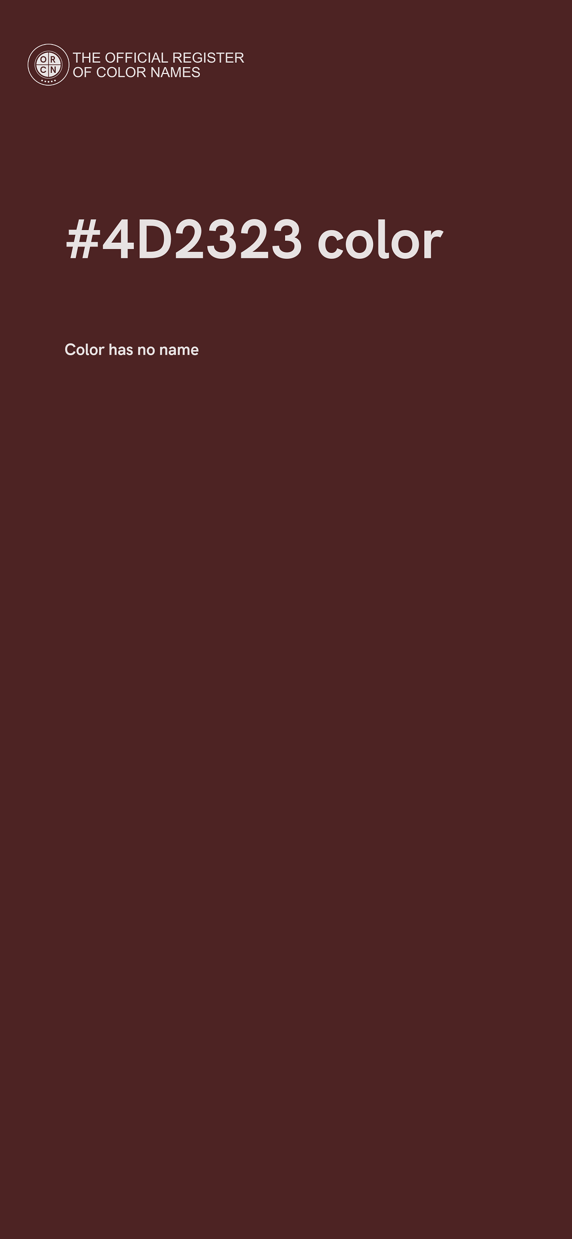 The digital color HEX #4D2323 belongs to the Red Color Family featuring Mild Saturation (Saturation Family) and Dark (Brightness Family).
