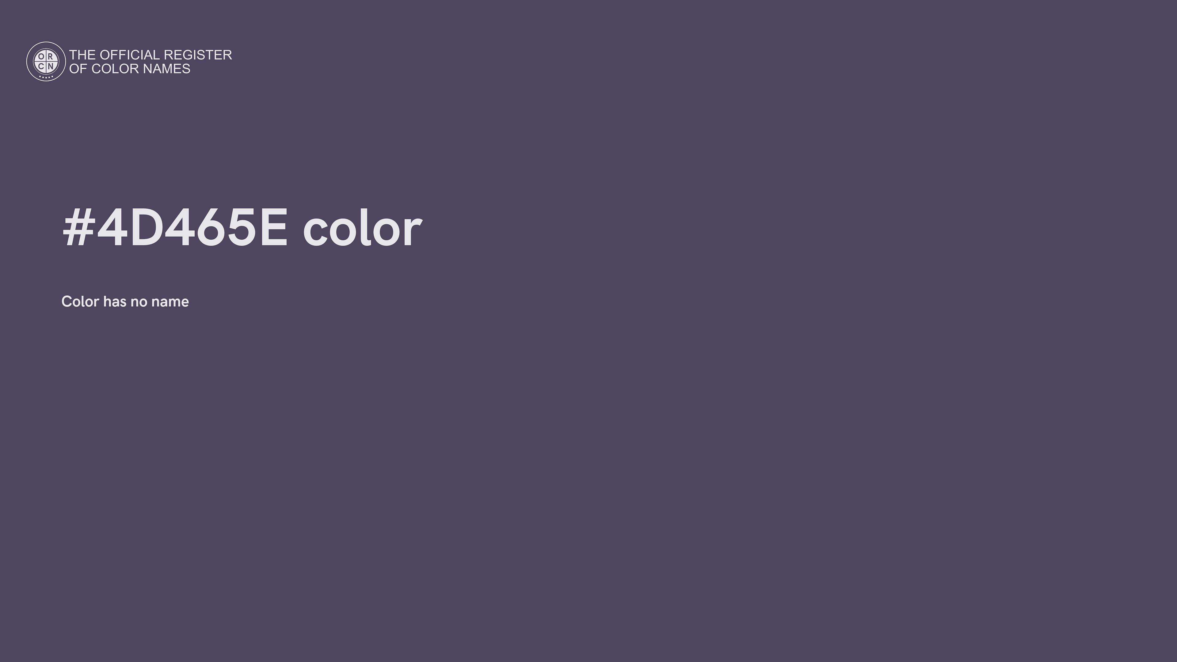 The digital color HEX #4D465E belongs to the Violet Color Family featuring Low Saturation (Saturation Family) and Neutral (Brightness Family).