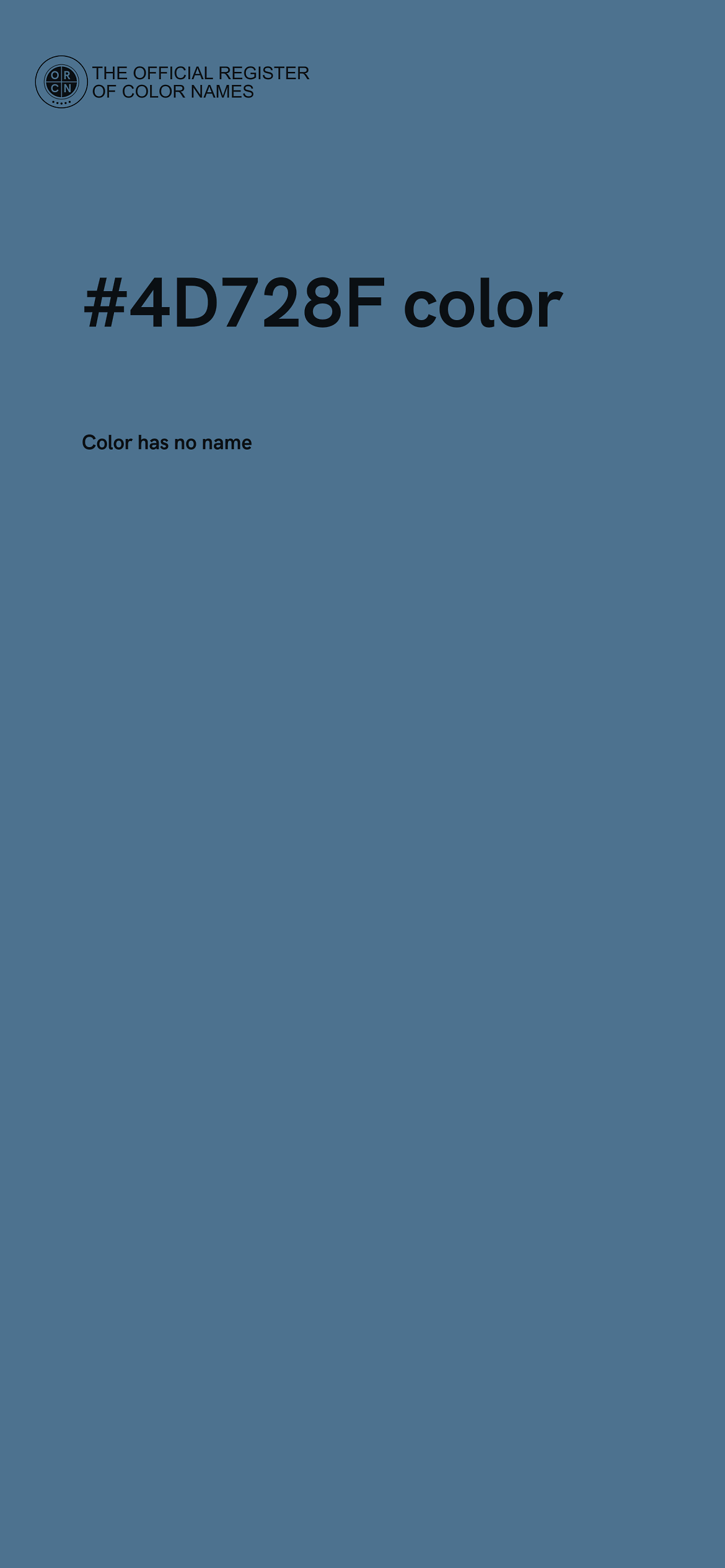 For printing in non digital world, #4D728F is represented in CMYK as 26 Cyan, 11 Magenta, 0 Yellow, and 44 Black (Key) (C:26 M:11 Y:0 K:44).