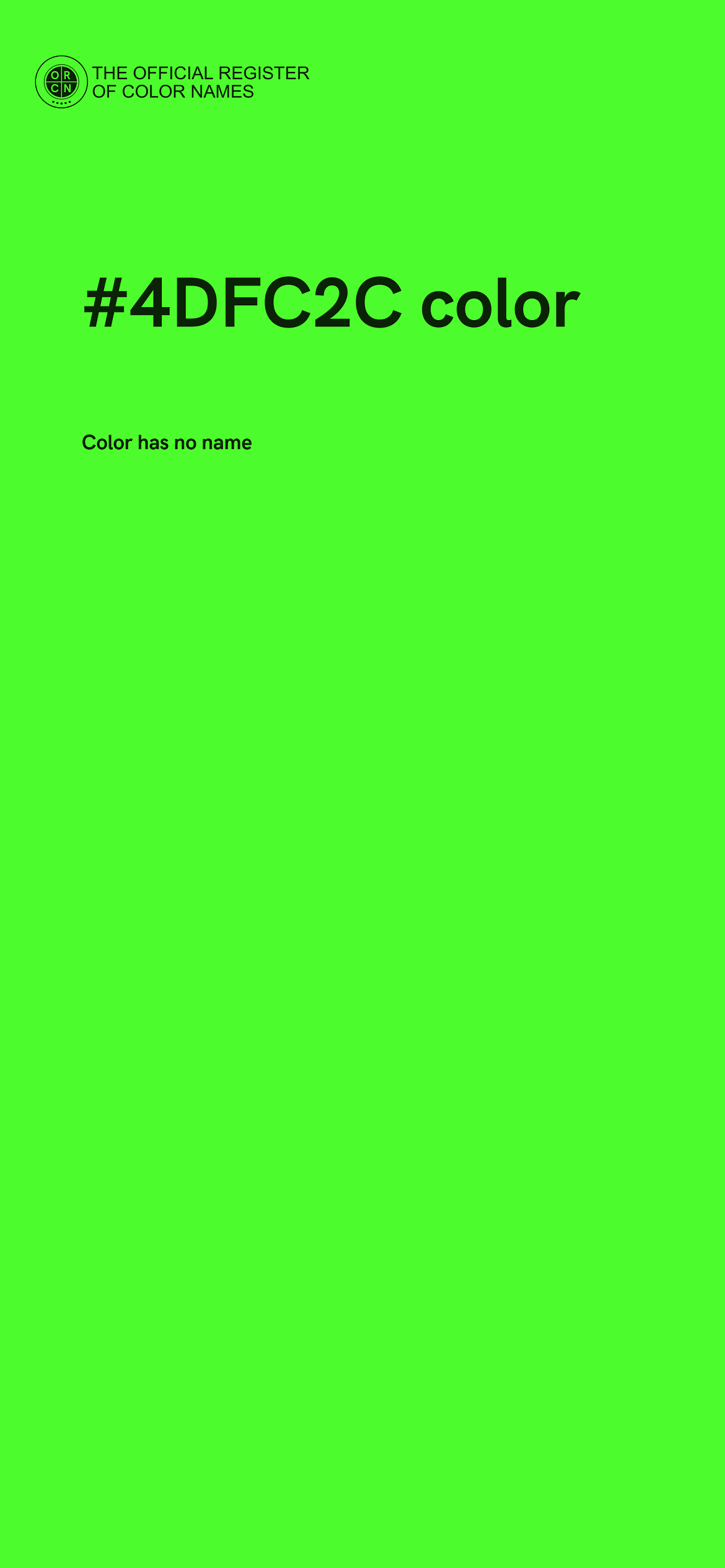 The digital color HEX #4DFC2C belongs to the Green Color Family featuring Full Saturation (Saturation Family) and Light (Brightness Family).