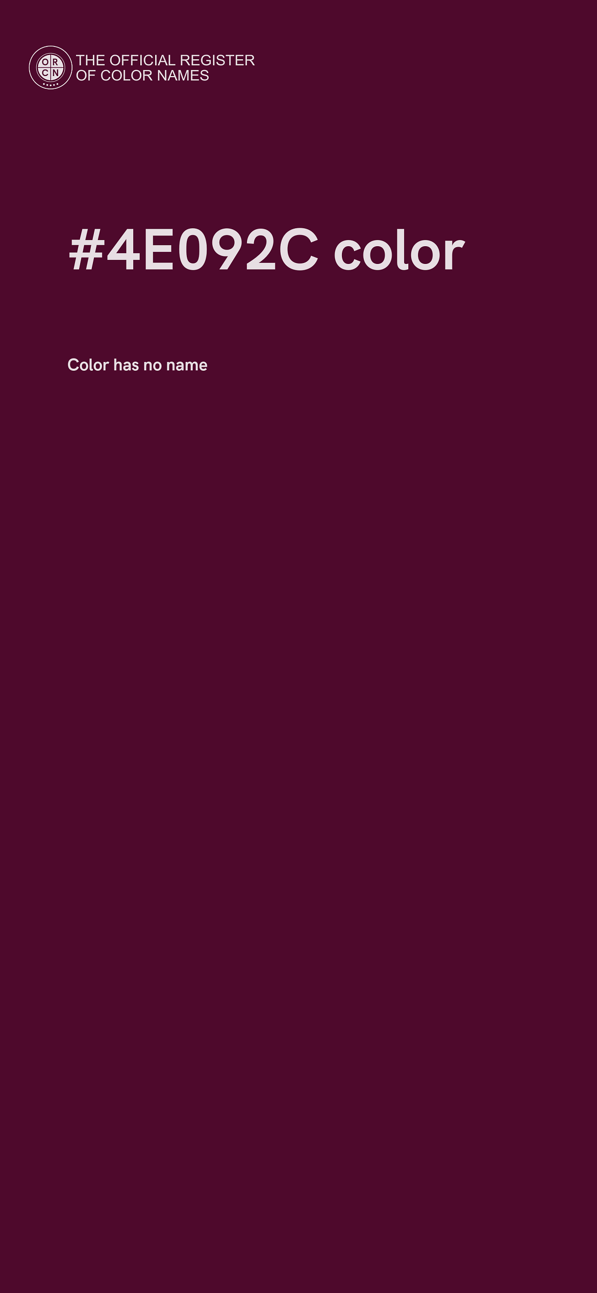 The digital color HEX #4E092C belongs to the Rose Color Family featuring High Saturation (Saturation Family) and Dark (Brightness Family).