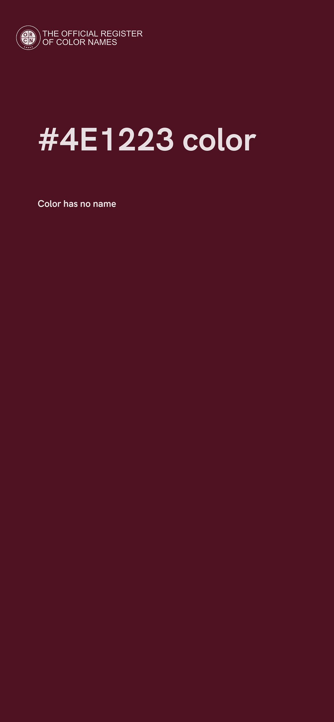 The digital color HEX #4E1223 belongs to the Rose Color Family featuring High Saturation (Saturation Family) and Dark (Brightness Family).