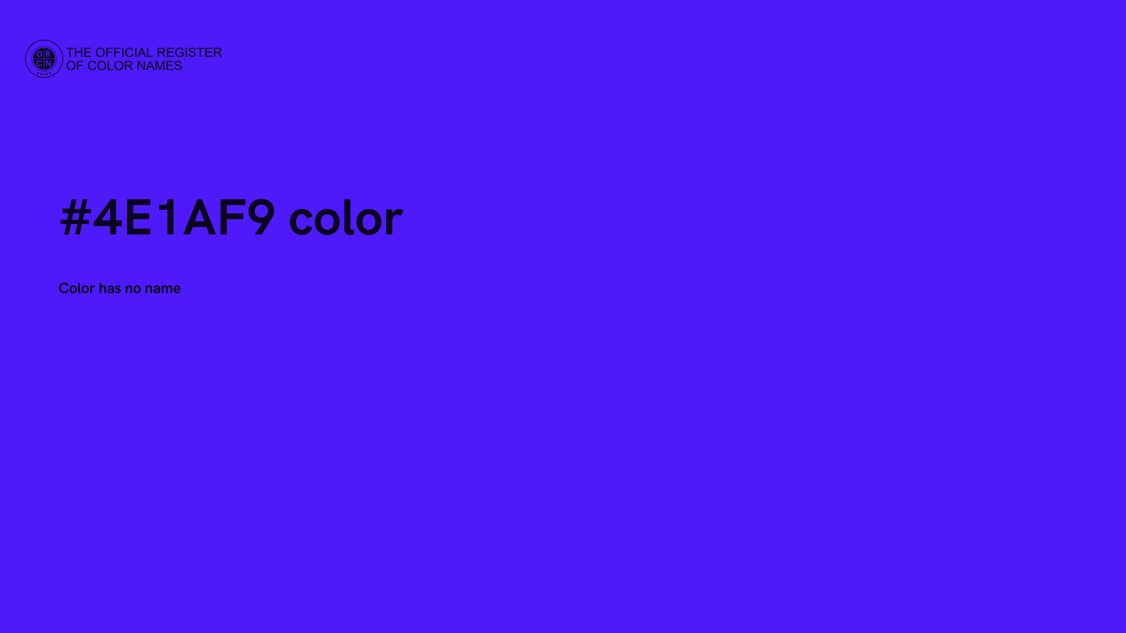 The digital color HEX #4E1AF9 belongs to the Blue Color Family featuring Full Saturation (Saturation Family) and Light (Brightness Family).