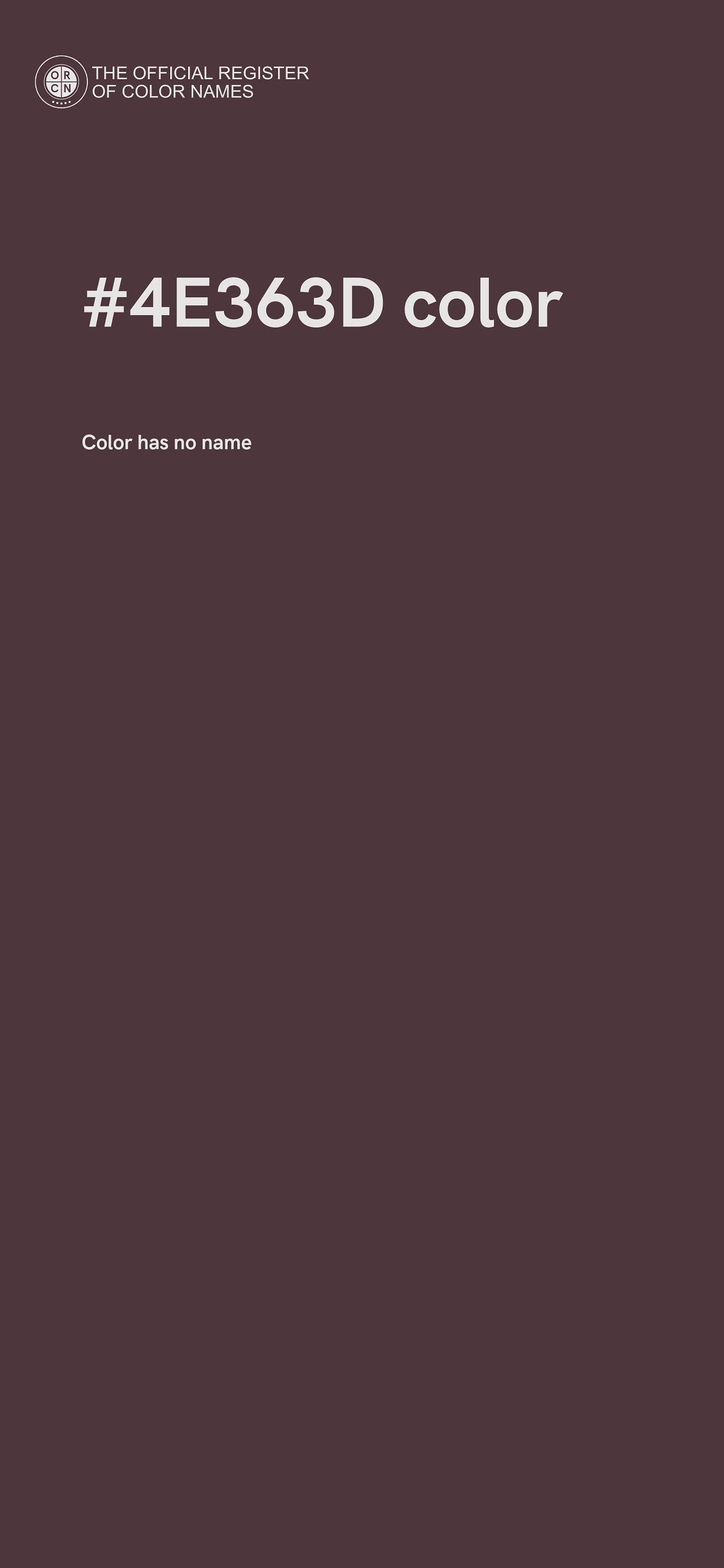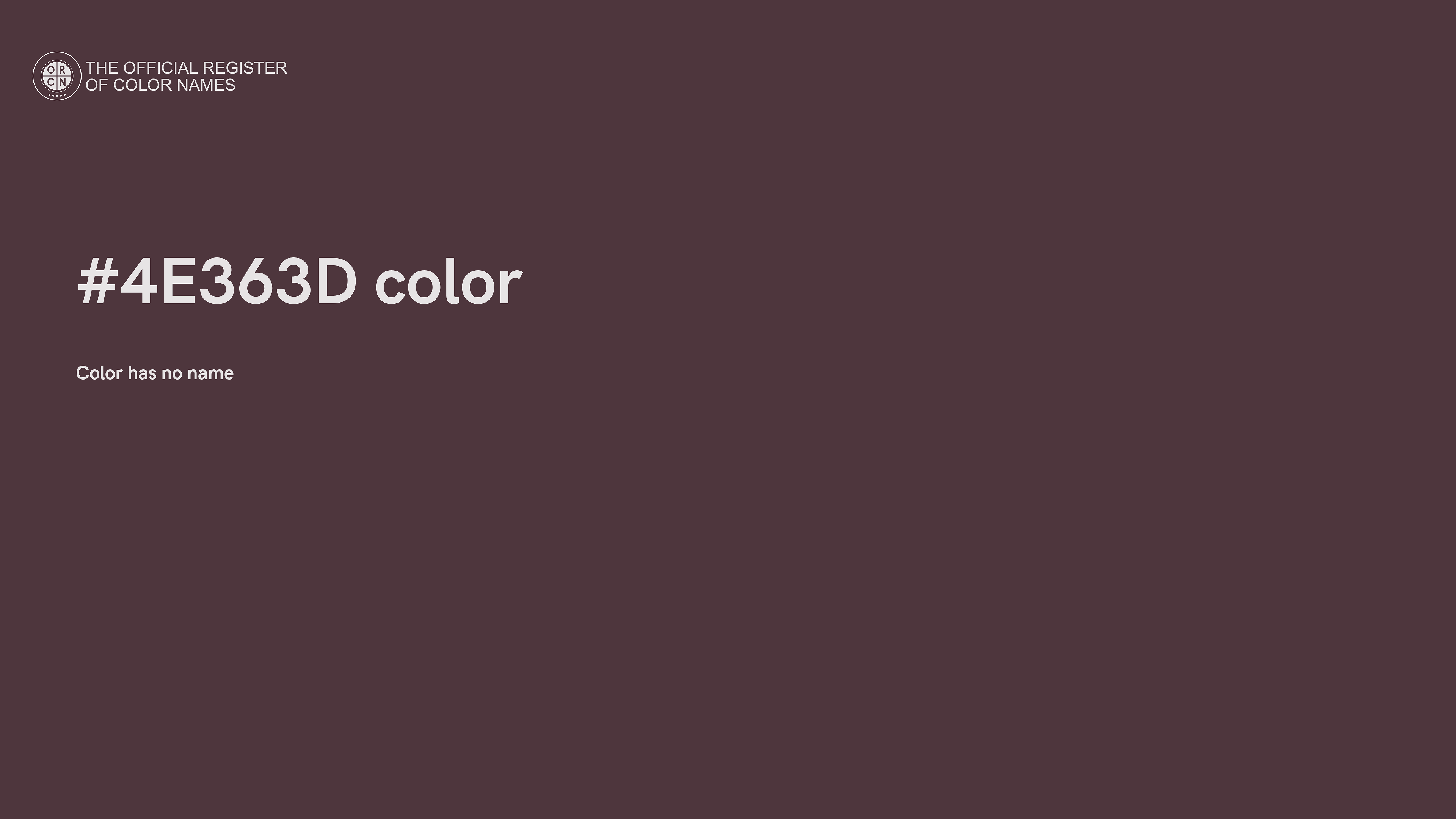 The digital color HEX #4E363D belongs to the Rose Color Family featuring Low Saturation (Saturation Family) and Neutral (Brightness Family).