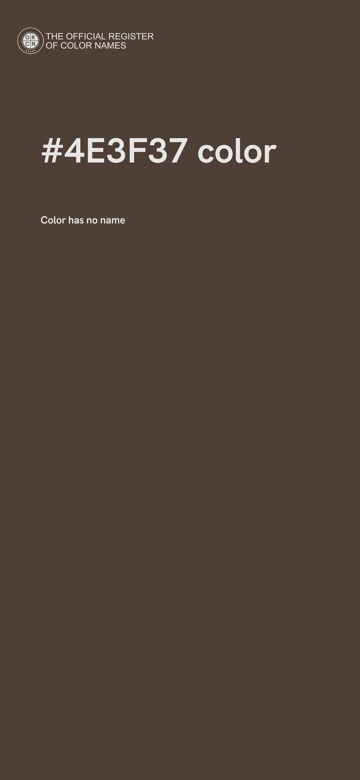 The digital color HEX #4E3F37 belongs to the Orange Color Family featuring Low Saturation (Saturation Family) and Neutral (Brightness Family).