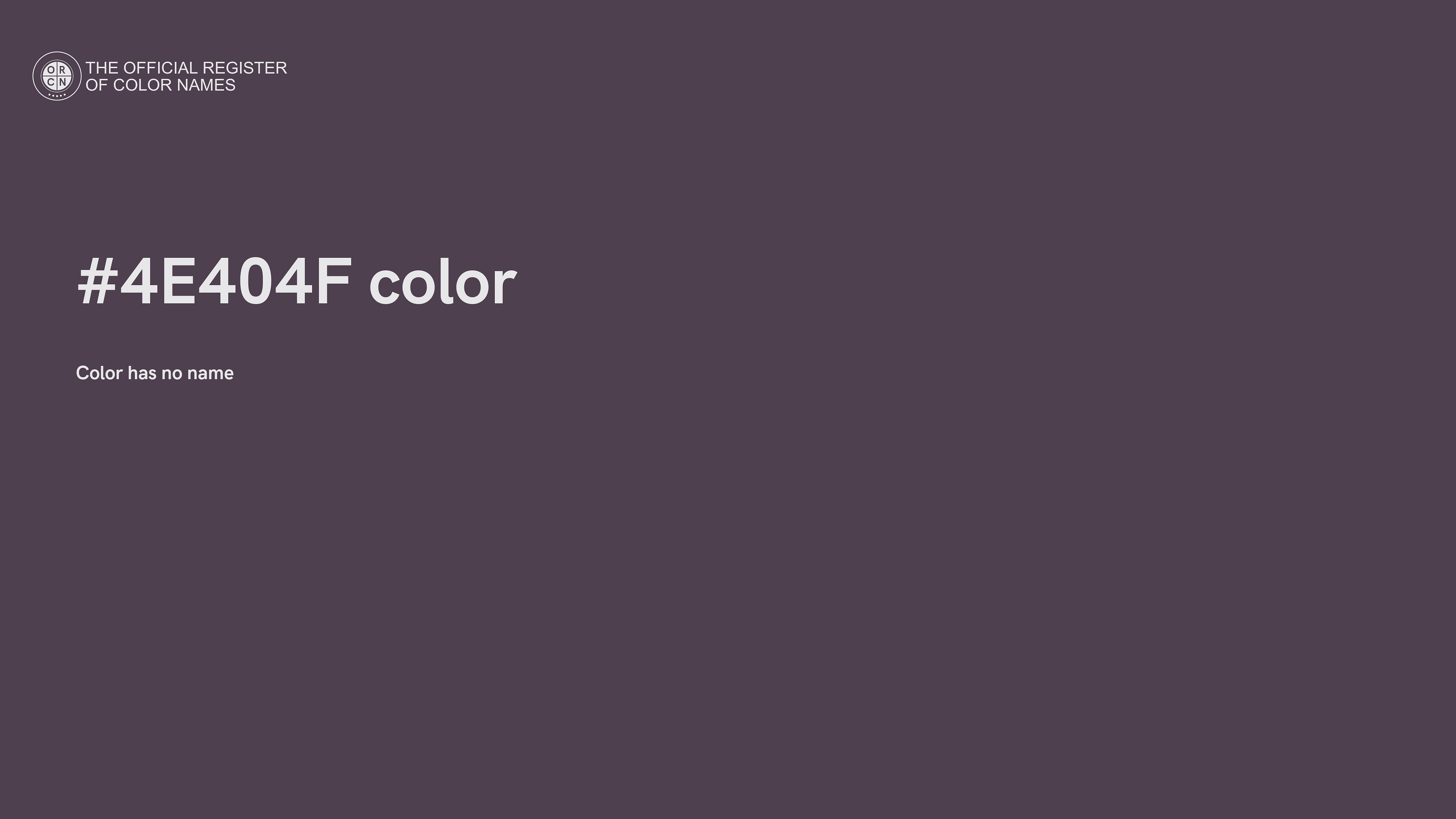 The digital color HEX #4E404F belongs to the Magenta Color Family featuring Low Saturation (Saturation Family) and Neutral (Brightness Family).