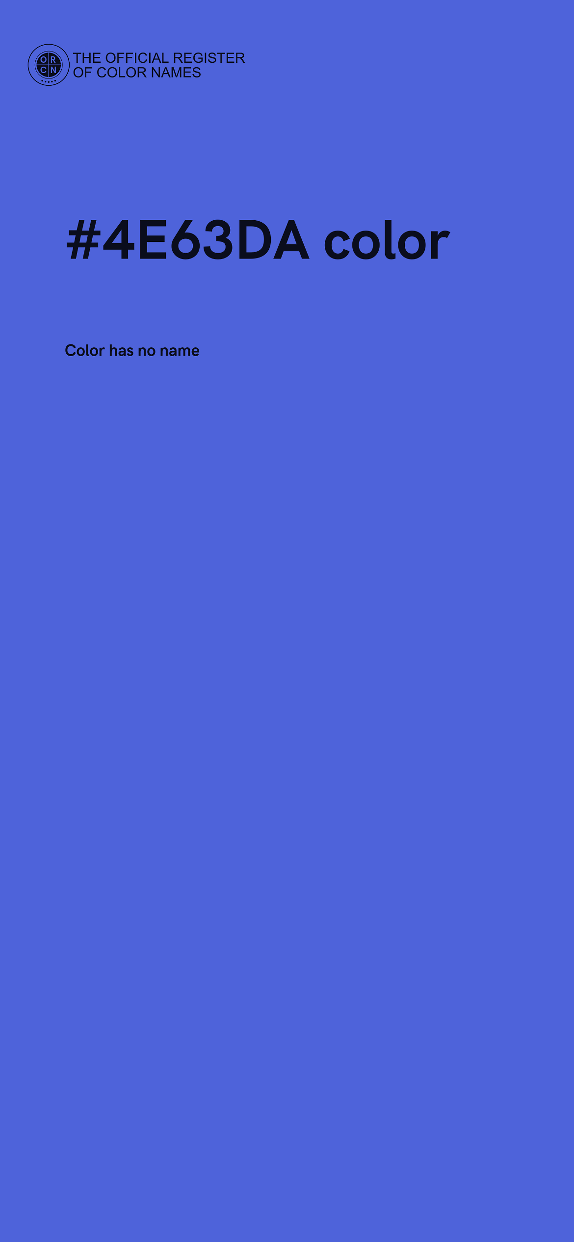 The digital color HEX #4E63DA belongs to the Blue Color Family featuring High Saturation (Saturation Family) and Light (Brightness Family).