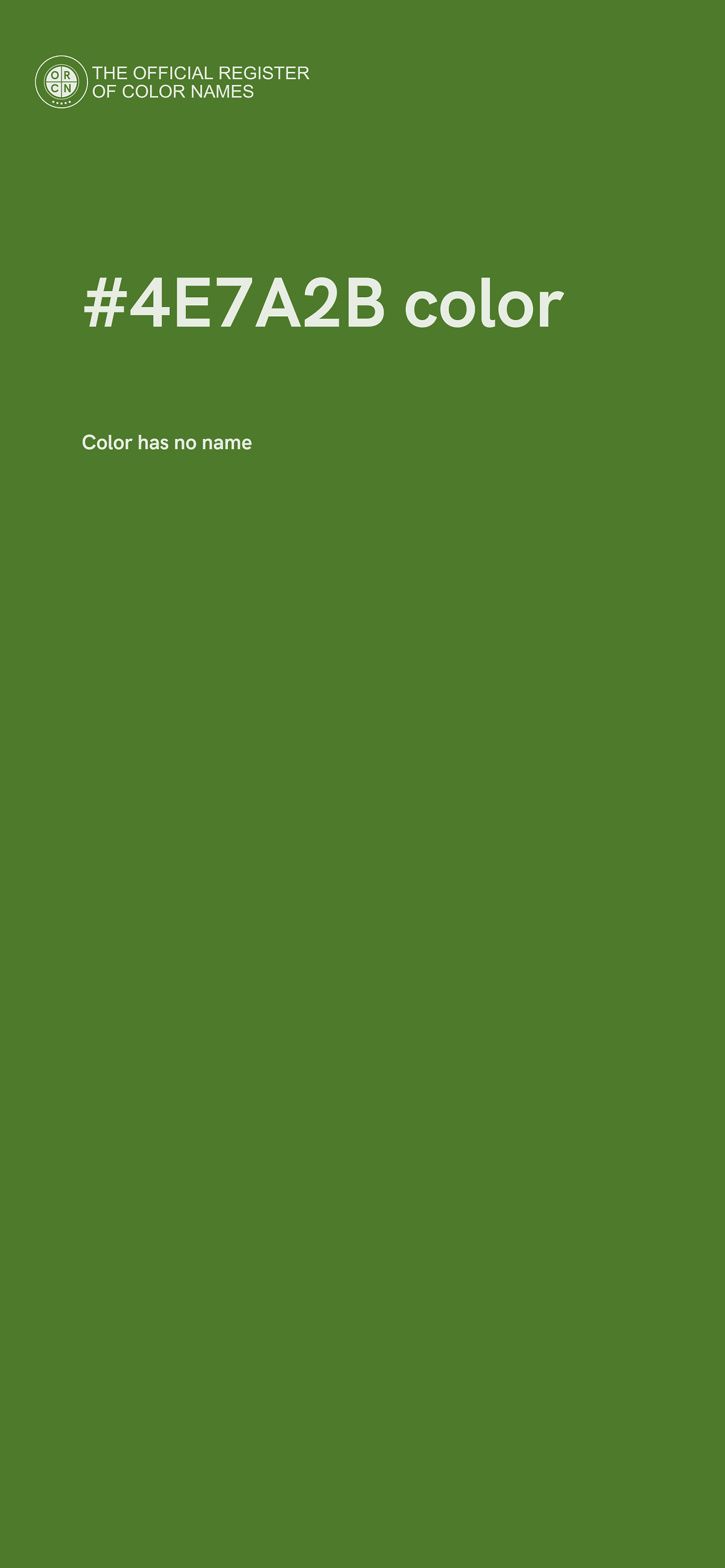 The digital color HEX #4E7A2B belongs to the Chartreuse Color Family featuring Moderate Saturation (Saturation Family) and Neutral (Brightness Family).