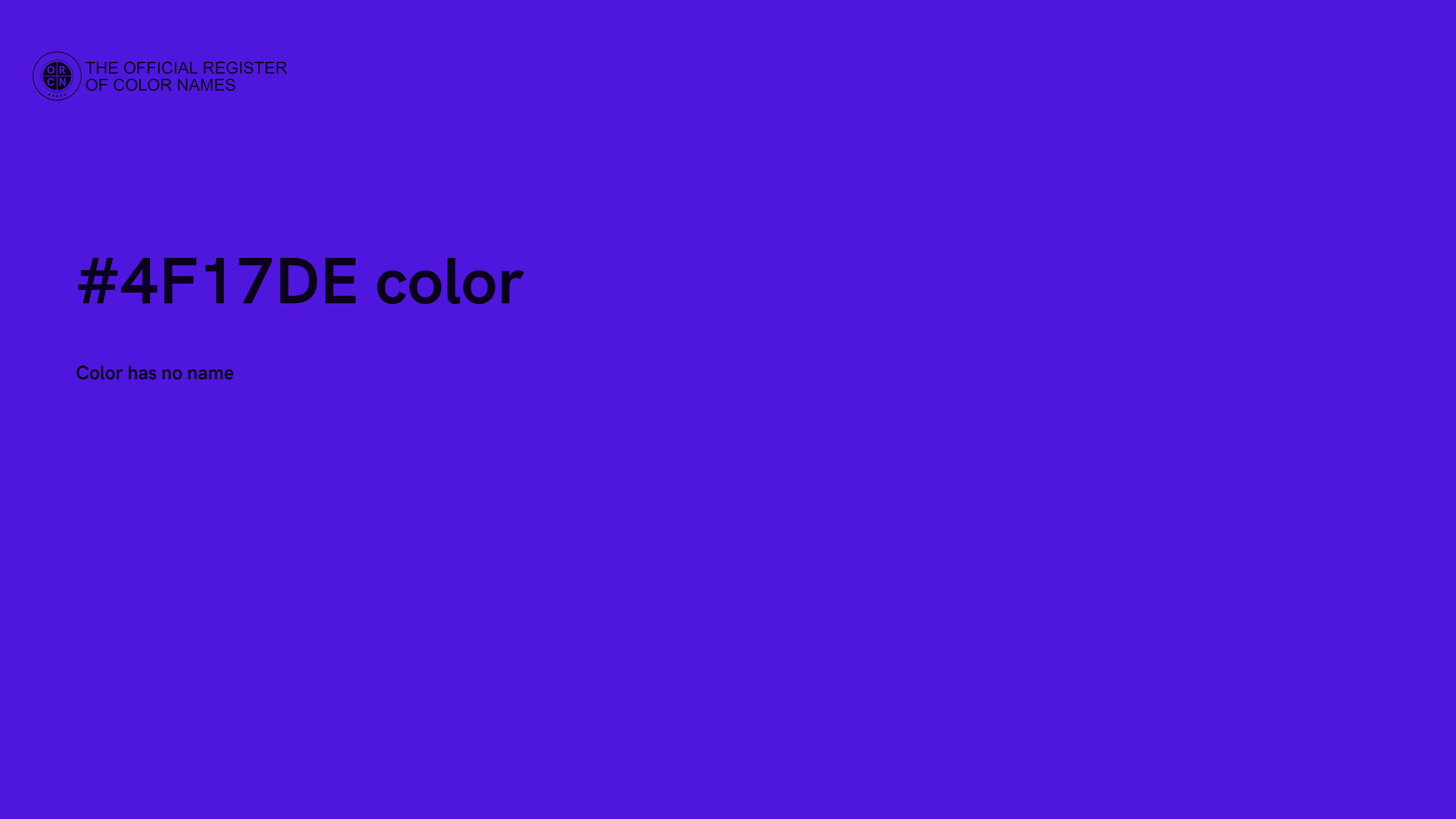 For printing in non digital world, #4F17DE is represented in CMYK as 56 Cyan, 78 Magenta, 0 Yellow, and 13 Black (Key) (C:56 M:78 Y:0 K:13).