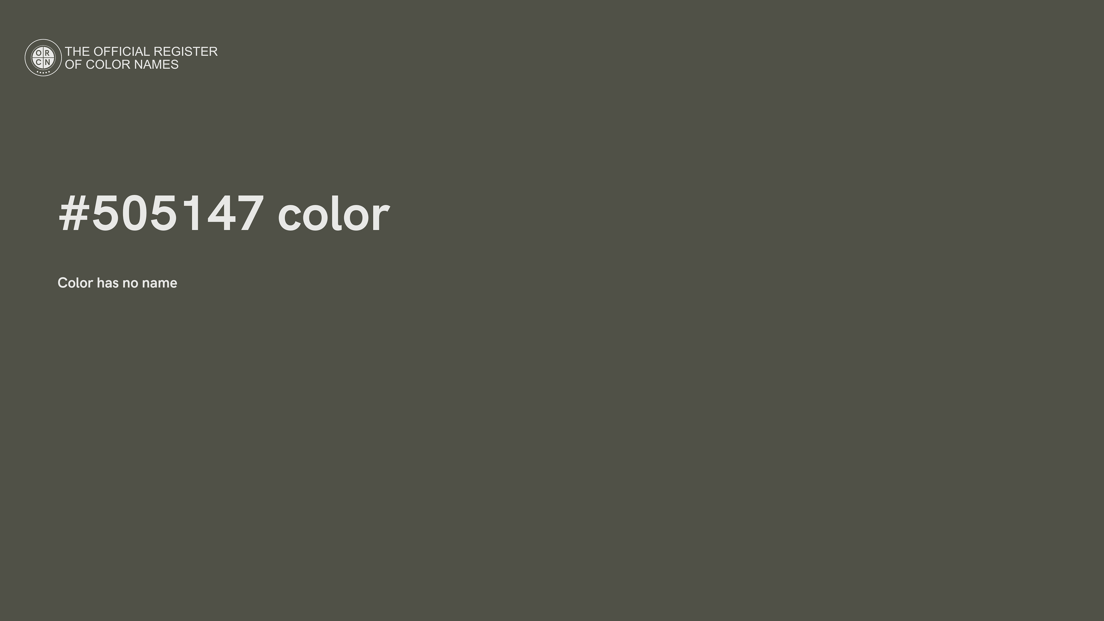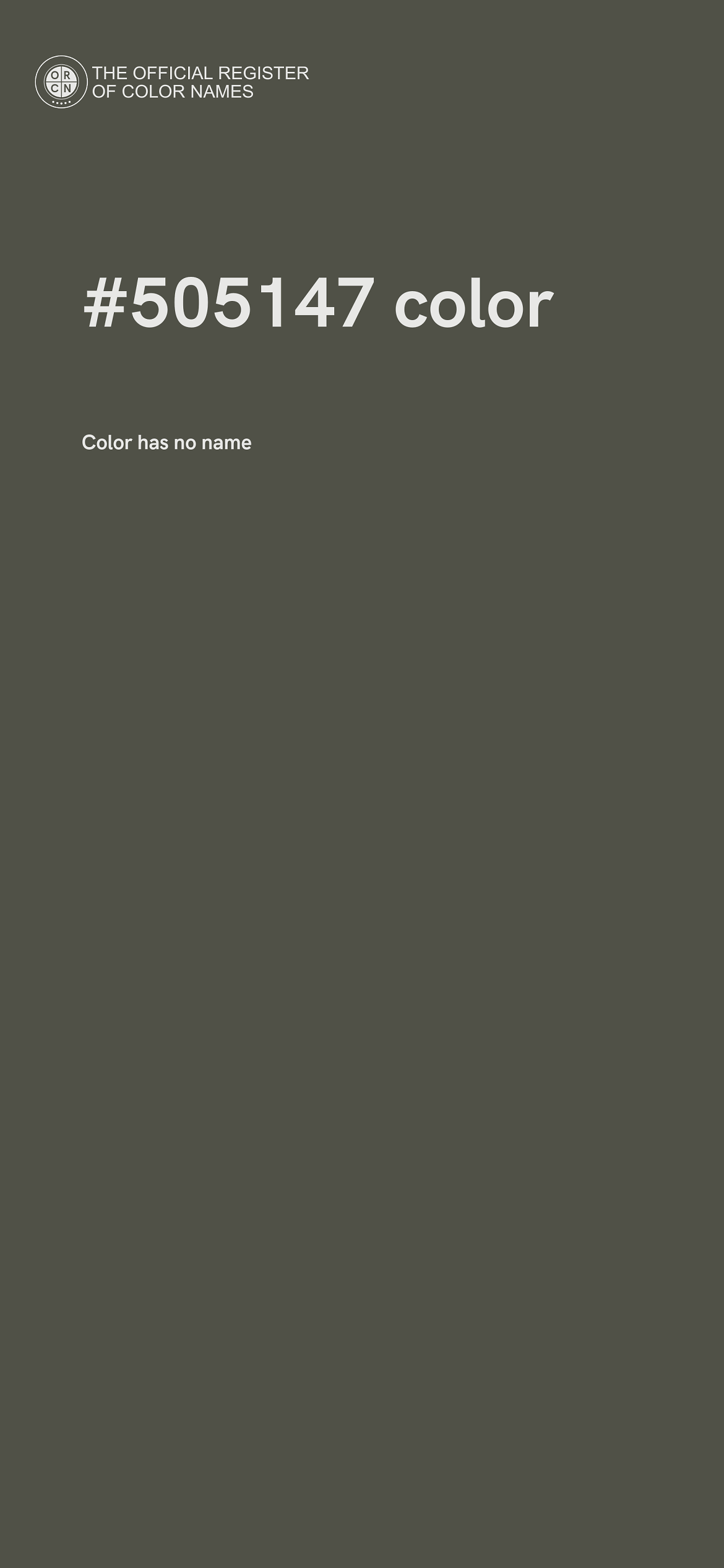 The digital color HEX #505147 belongs to the Yellow Color Family featuring Desaturated (Saturation Family) and Neutral (Brightness Family).