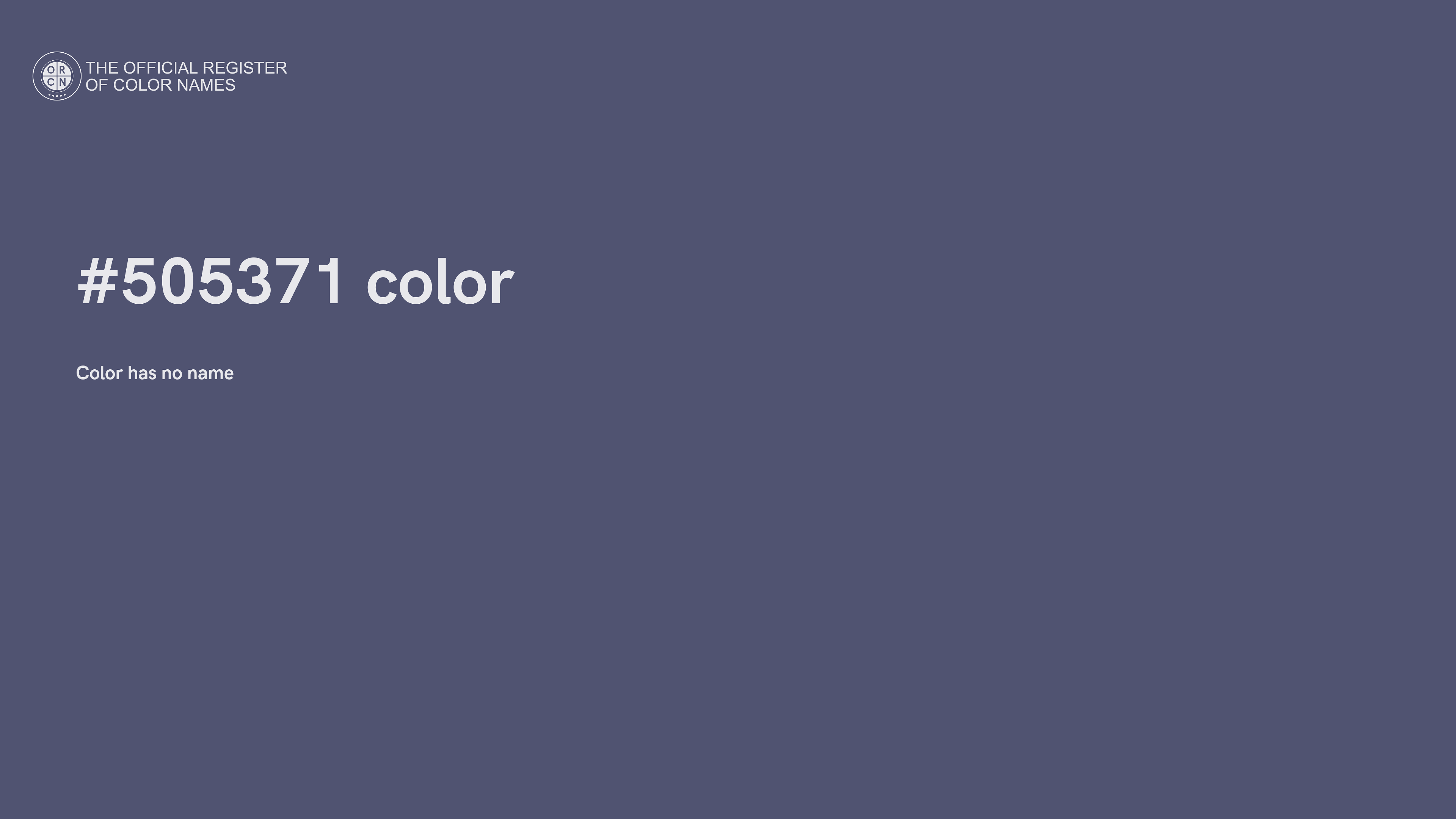 For printing in non digital world, #505371 is represented in CMYK as 13 Cyan, 12 Magenta, 0 Yellow, and 56 Black (Key) (C:13 M:12 Y:0 K:56).