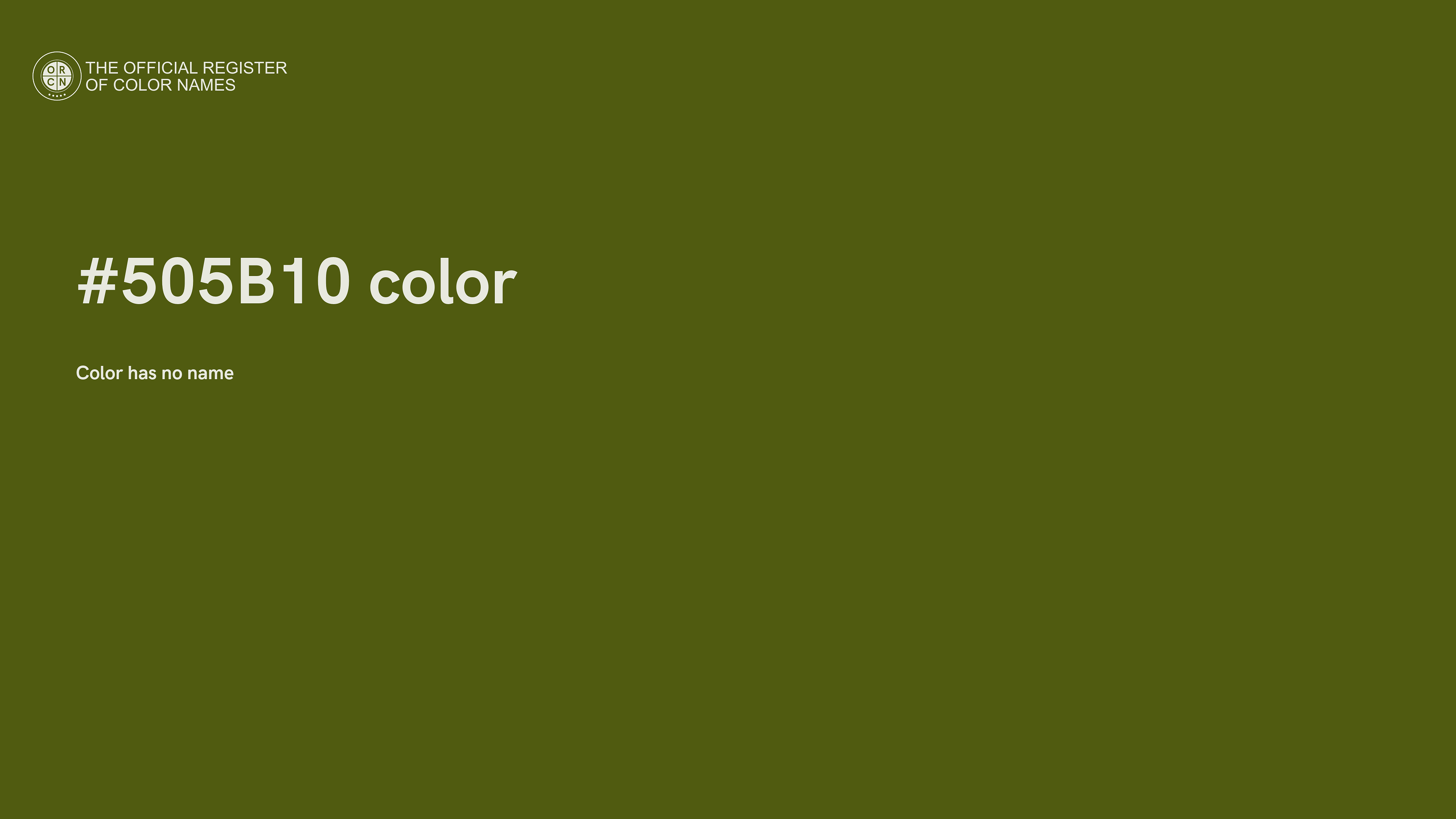 The digital color HEX #505B10 belongs to the Yellow Color Family featuring High Saturation (Saturation Family) and Dark (Brightness Family).