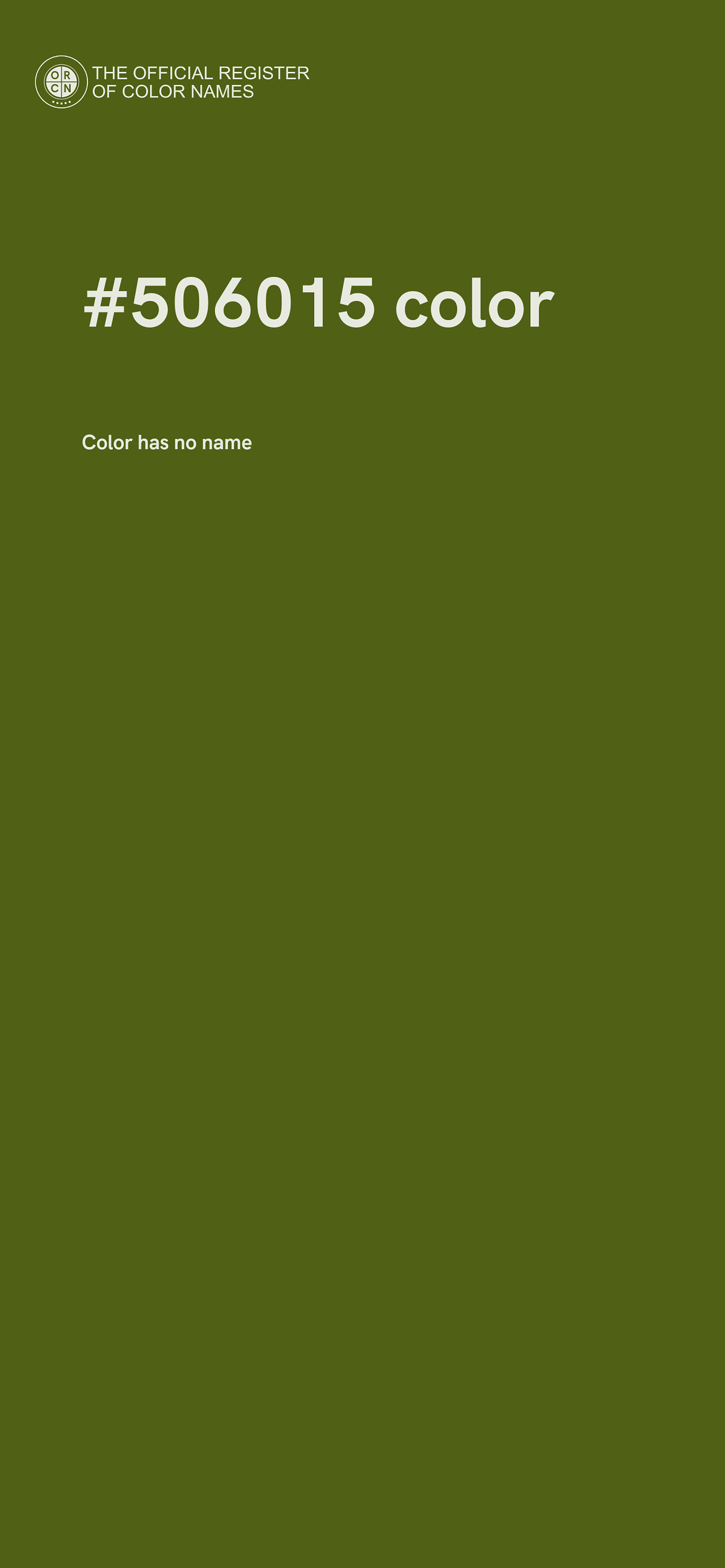 The digital color HEX #506015 belongs to the Yellow Color Family featuring High Saturation (Saturation Family) and Dark (Brightness Family).