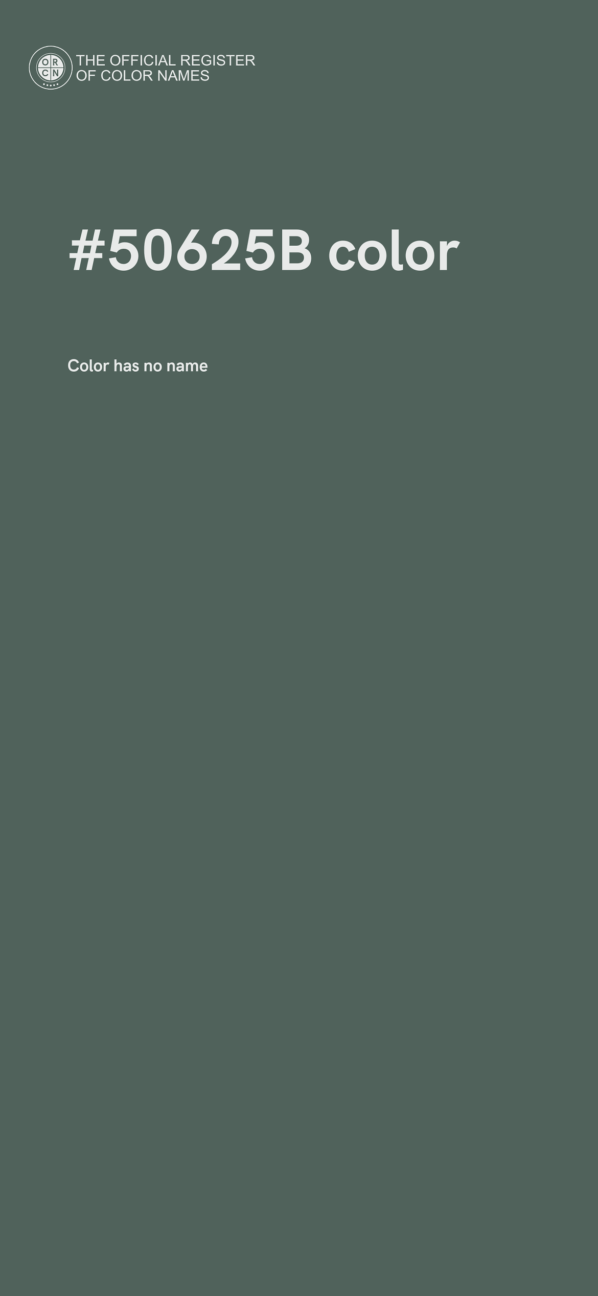 The digital color HEX #50625B belongs to the Spring Green Color Family featuring Low Saturation (Saturation Family) and Neutral (Brightness Family).