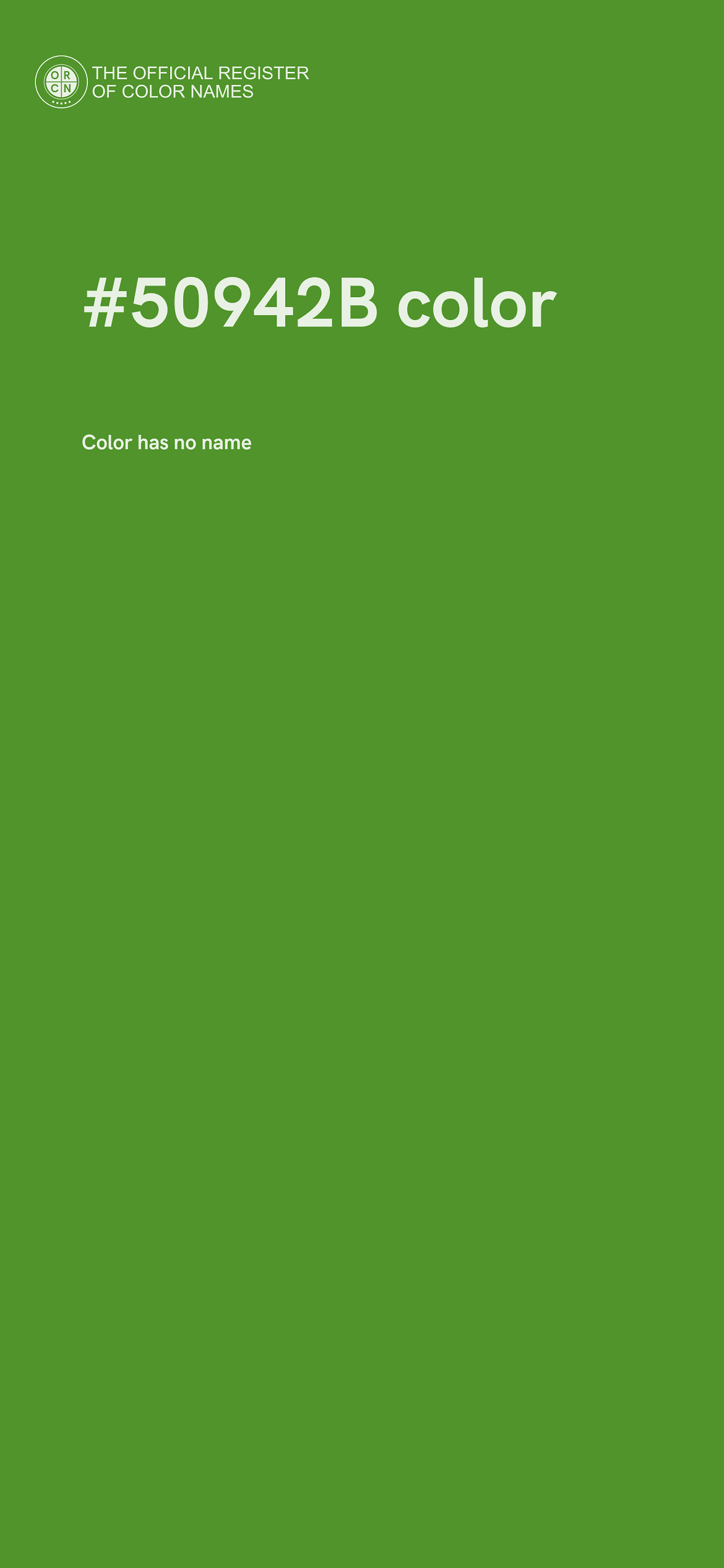 The digital color HEX #50942B belongs to the Chartreuse Color Family featuring Moderate Saturation (Saturation Family) and Neutral (Brightness Family).