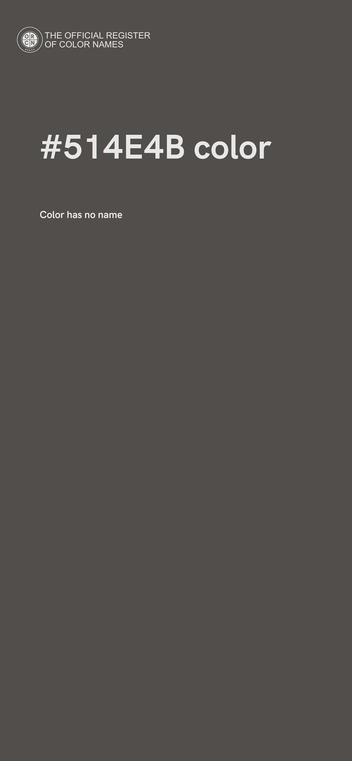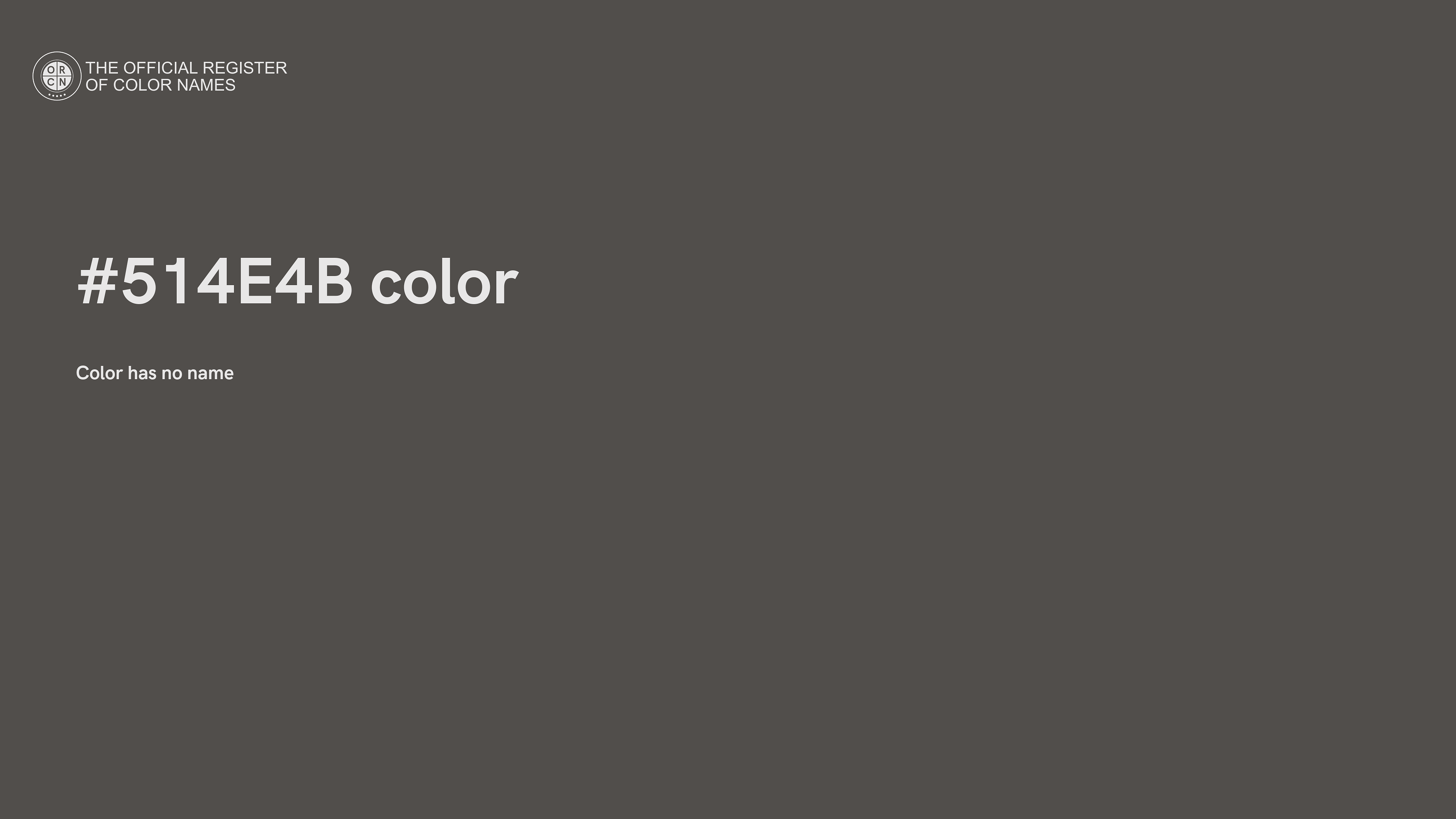 The digital color HEX #514E4B belongs to the Orange Color Family featuring Desaturated (Saturation Family) and Neutral (Brightness Family).