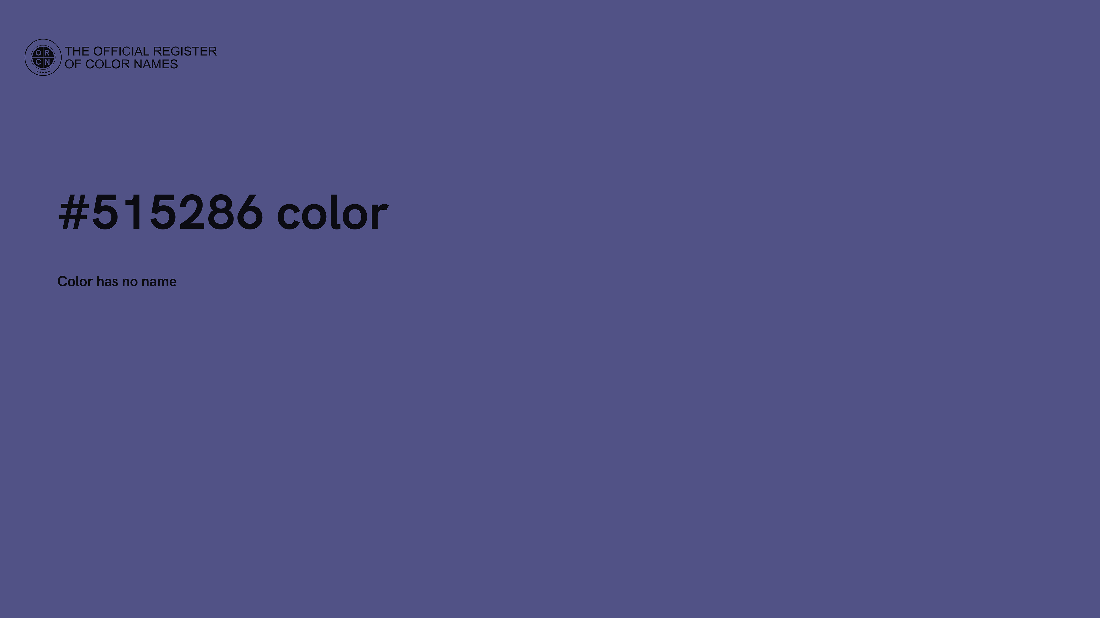 For printing in non digital world, #515286 is represented in CMYK as 21 Cyan, 20 Magenta, 0 Yellow, and 47 Black (Key) (C:21 M:20 Y:0 K:47).