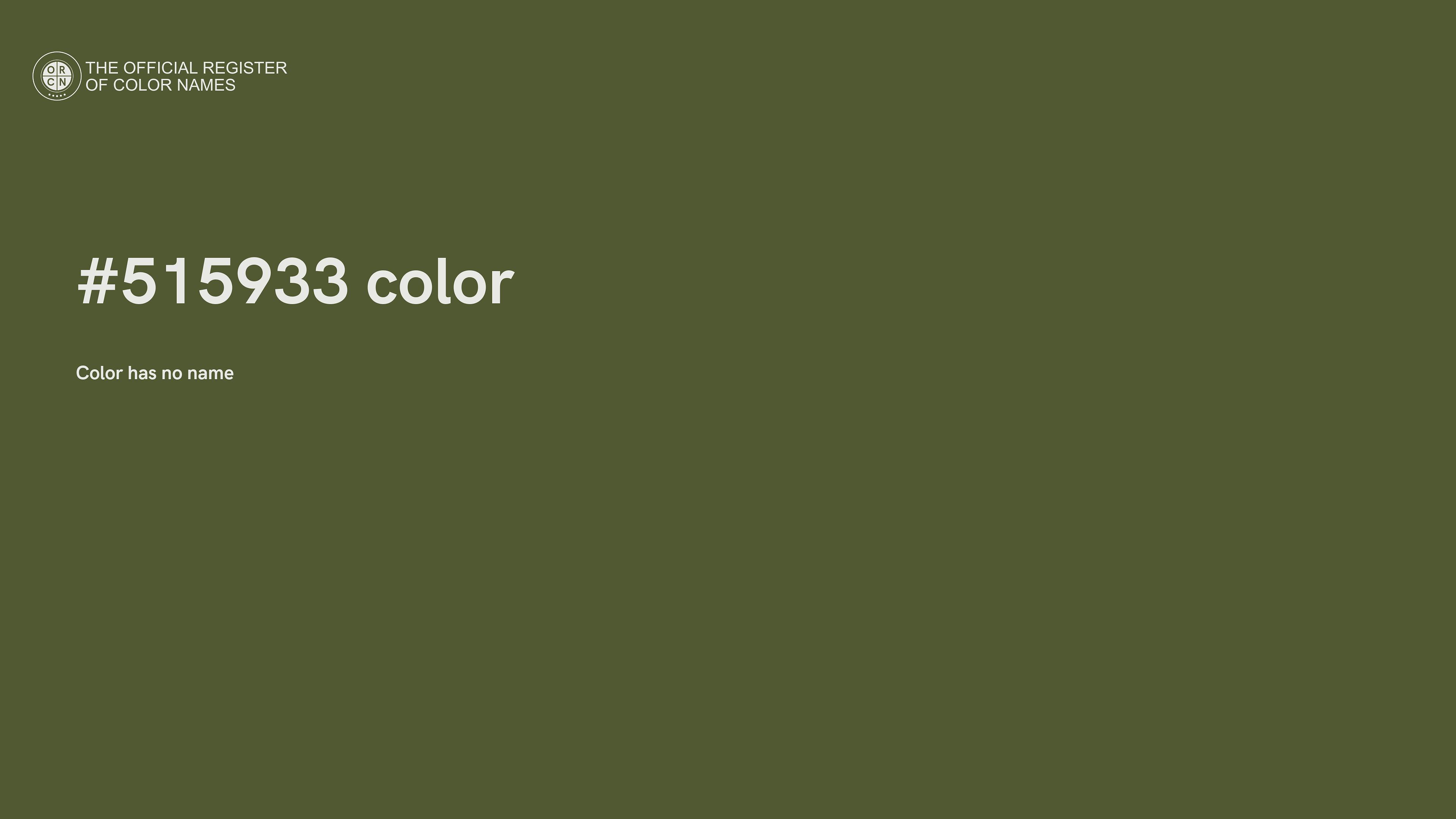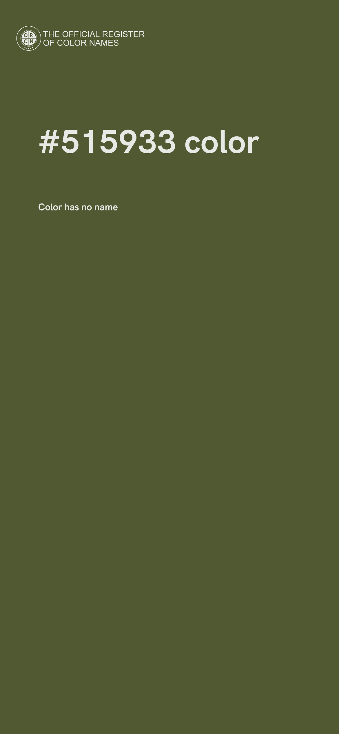 The digital color HEX #515933 belongs to the Yellow Color Family featuring Mild Saturation (Saturation Family) and Neutral (Brightness Family).