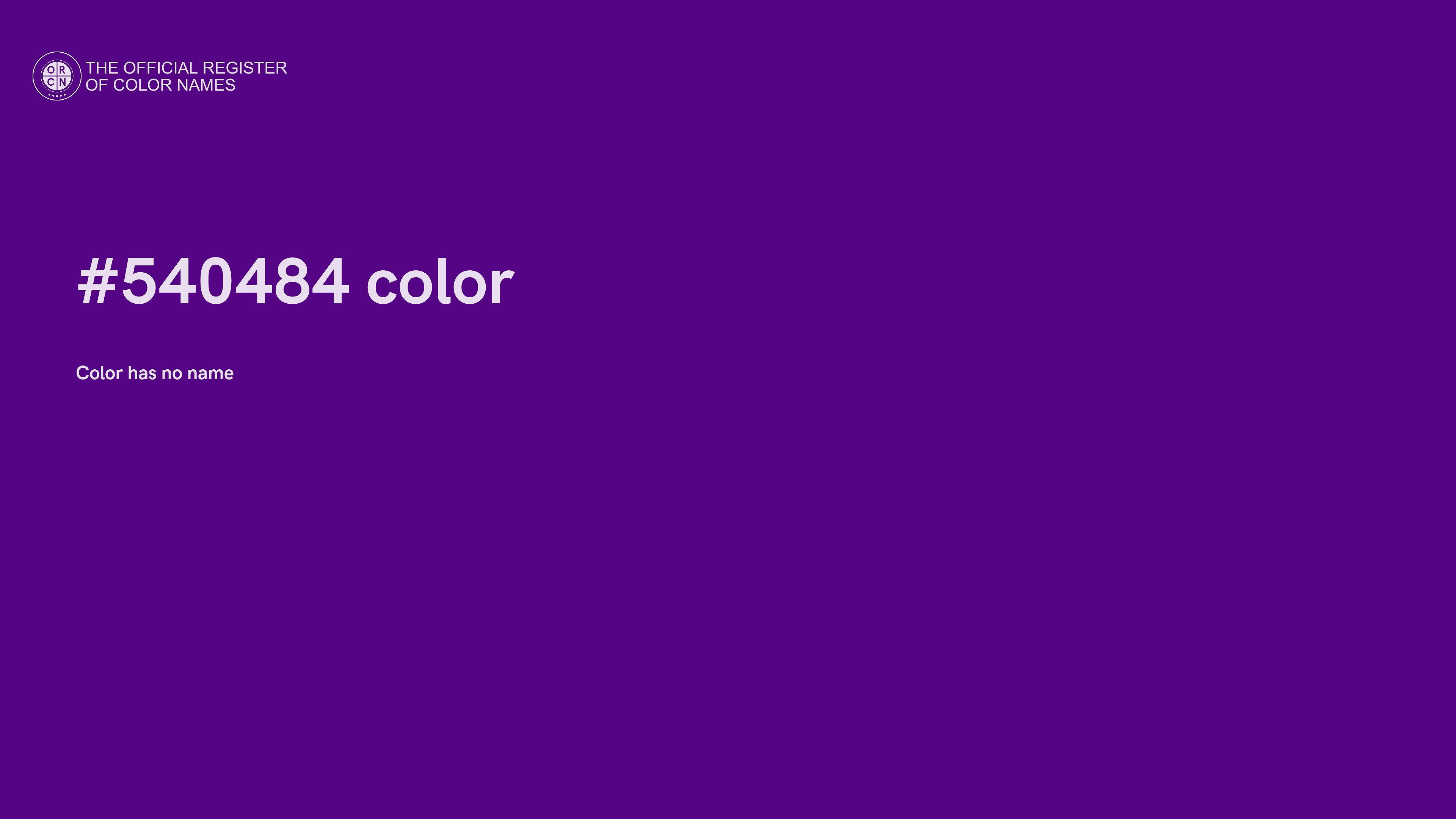The digital color HEX #540484 belongs to the Violet Color Family featuring Full Saturation (Saturation Family) and Neutral (Brightness Family).