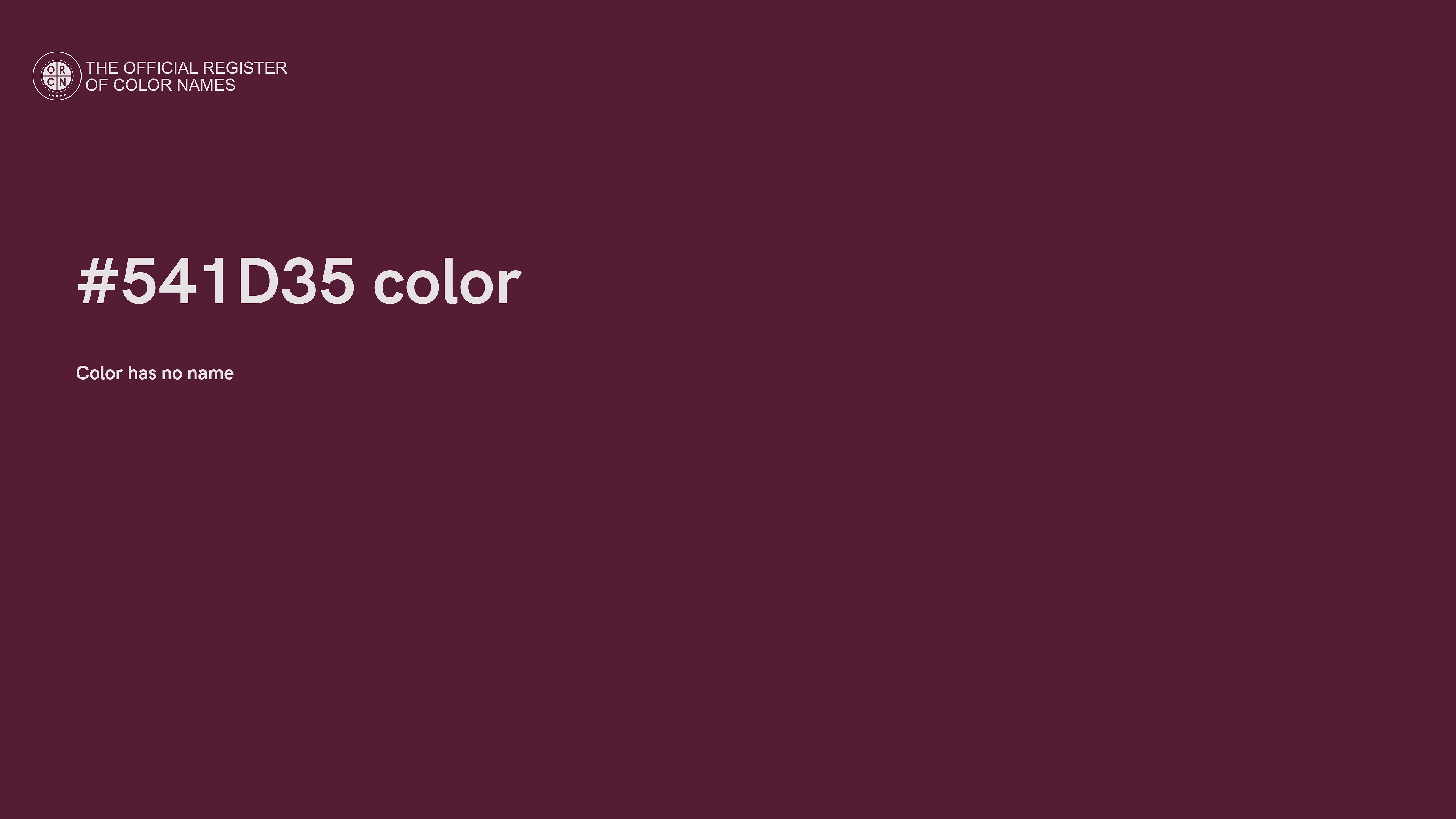 The digital color HEX #541D35 belongs to the Rose Color Family featuring Moderate Saturation (Saturation Family) and Dark (Brightness Family).