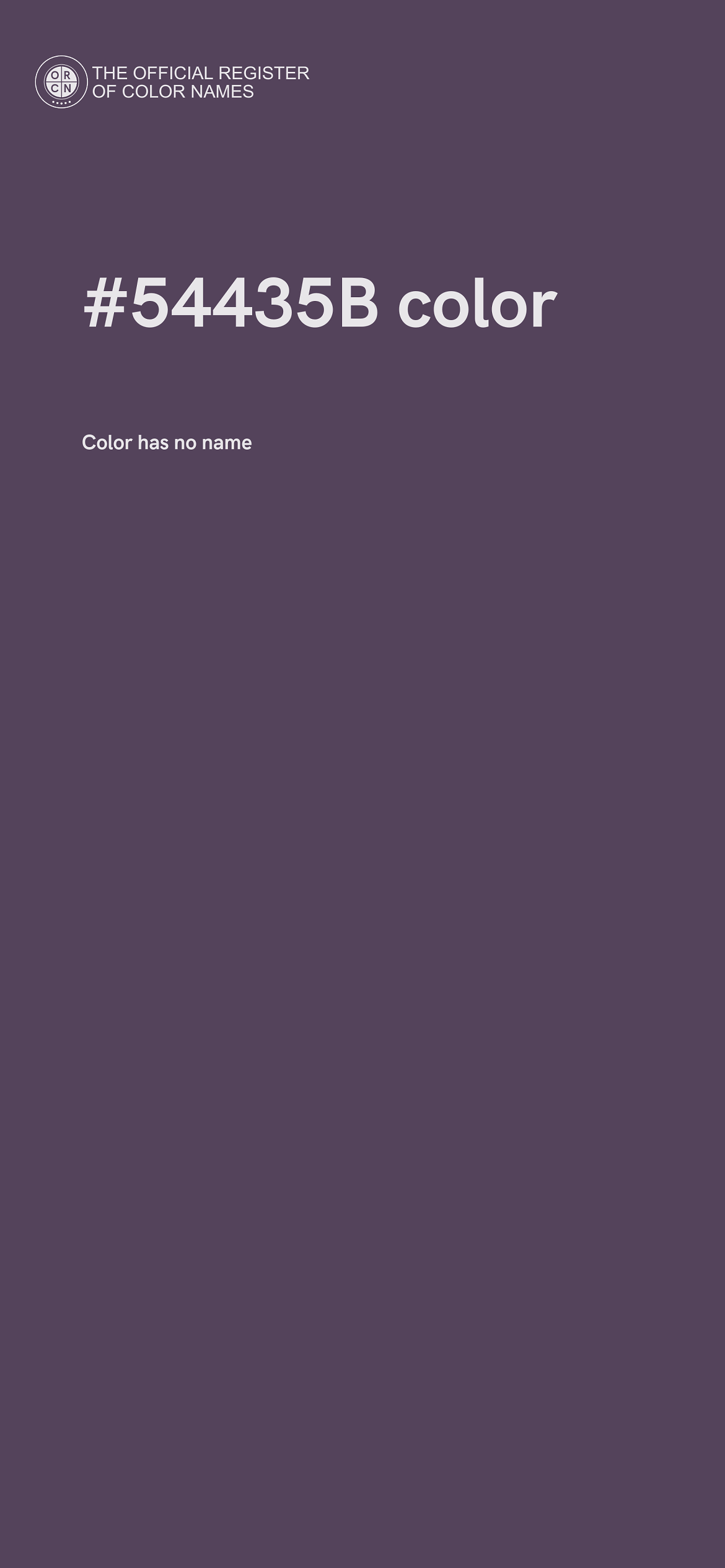 The digital color HEX #54435B belongs to the Violet Color Family featuring Low Saturation (Saturation Family) and Neutral (Brightness Family).