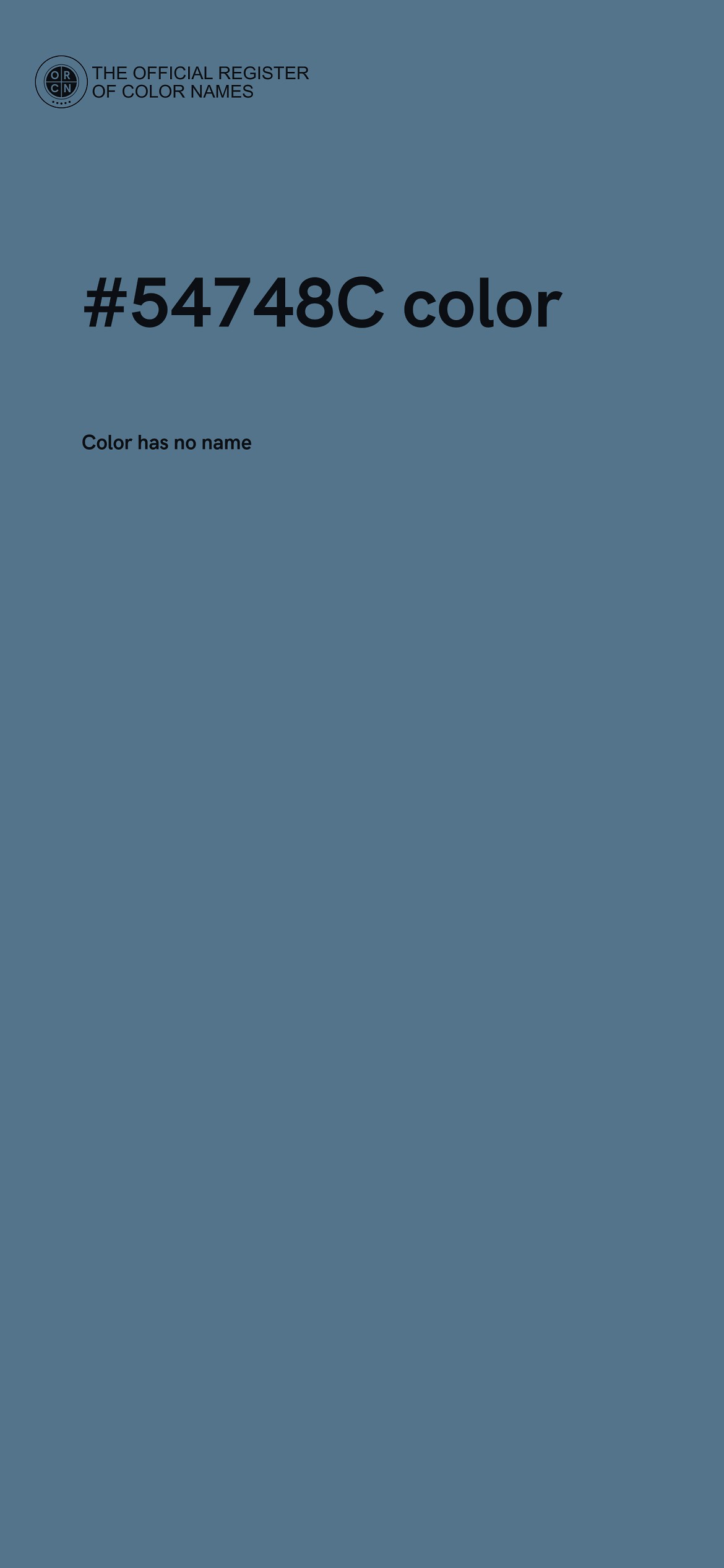 For printing in non digital world, #54748C is represented in CMYK as 22 Cyan, 9 Magenta, 0 Yellow, and 45 Black (Key) (C:22 M:9 Y:0 K:45).