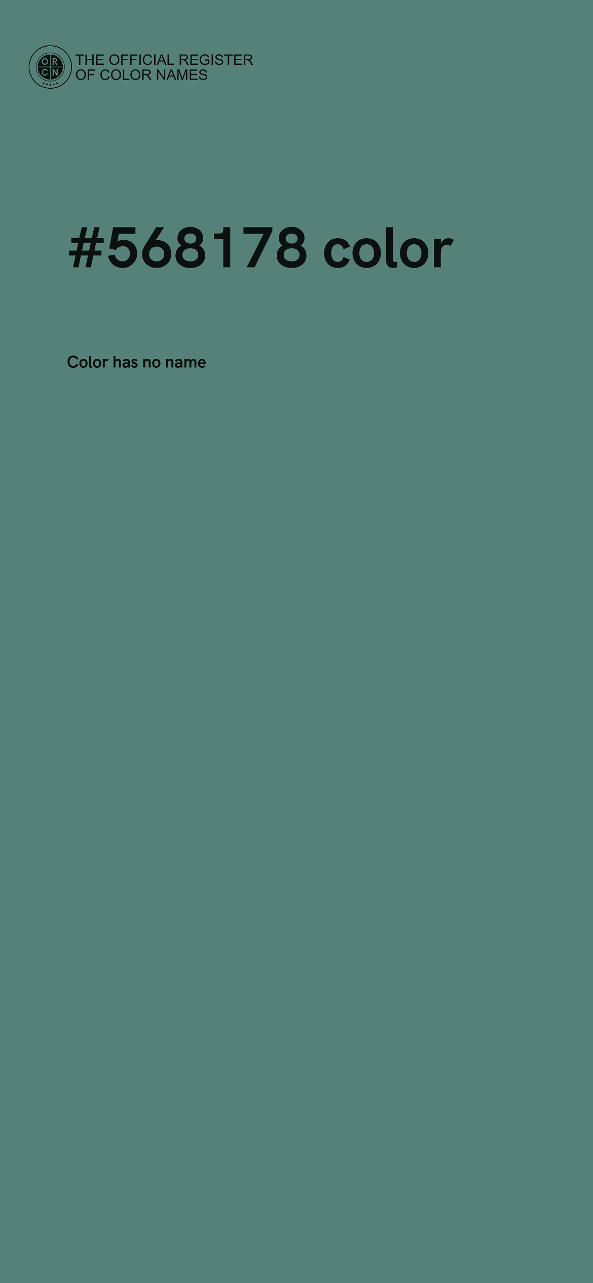 The digital color HEX #568178 belongs to the Cyan Color Family featuring Low Saturation (Saturation Family) and Light (Brightness Family).