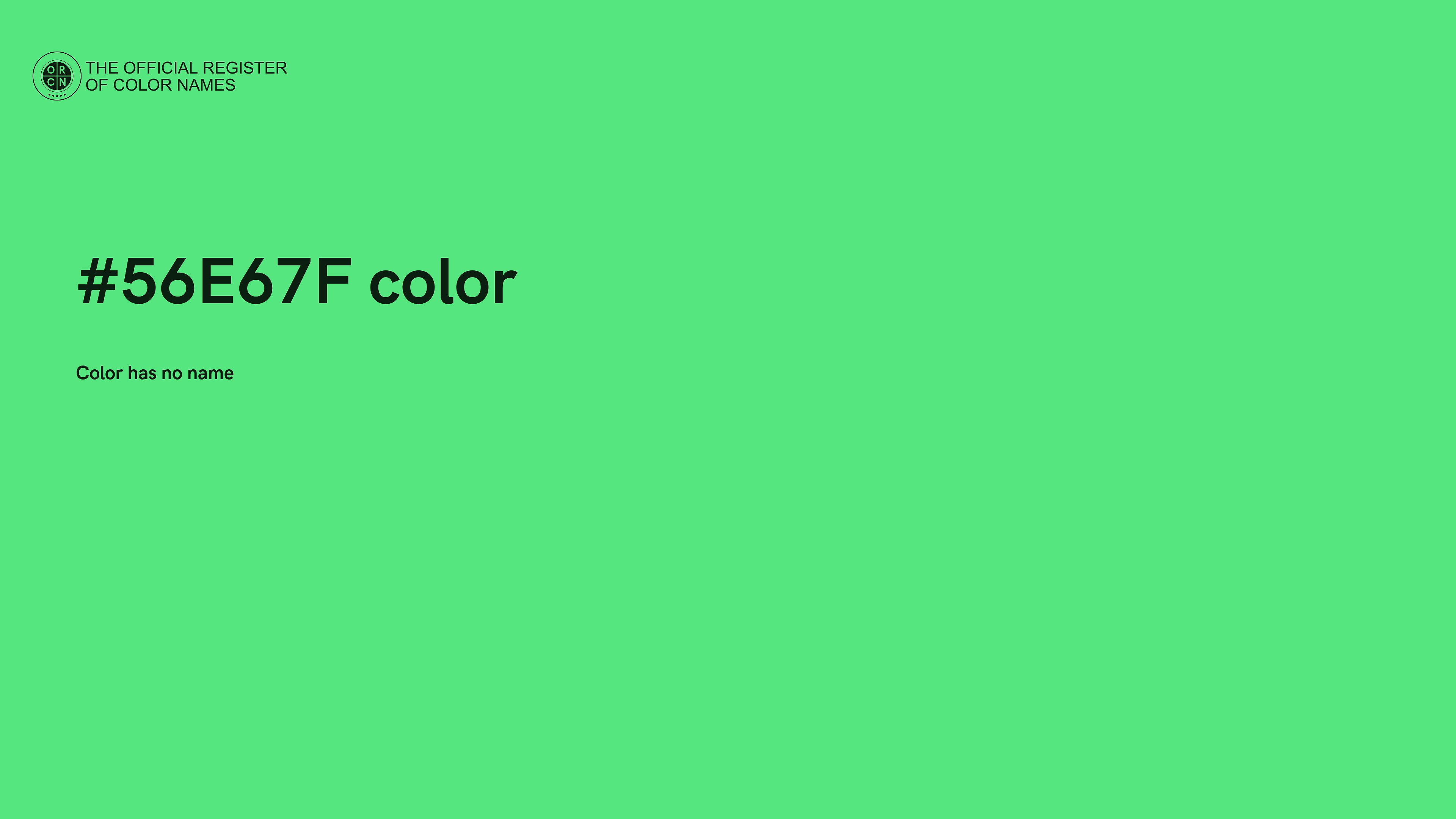 The digital color HEX #56E67F belongs to the Spring Green Color Family featuring High Saturation (Saturation Family) and Very Light (Brightness Family).