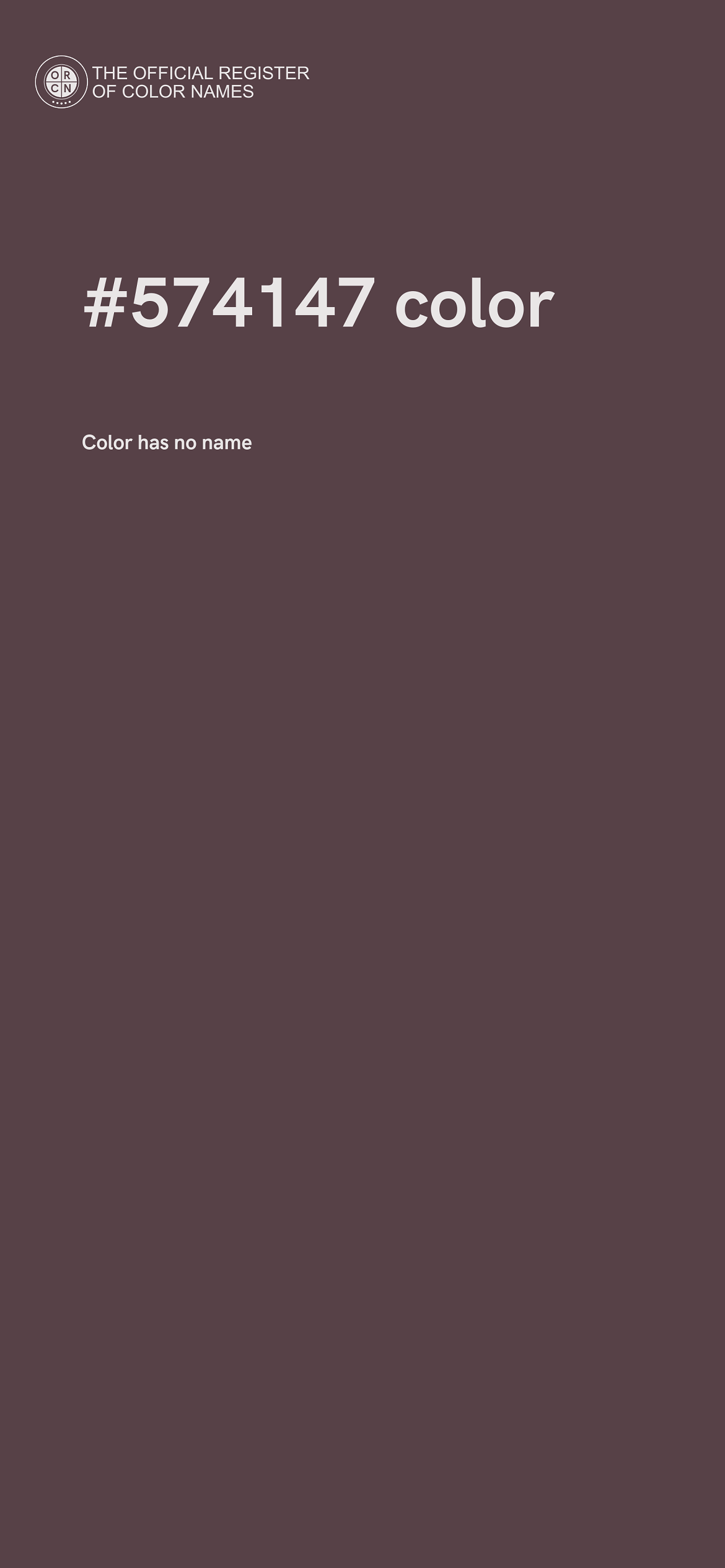 The digital color HEX #574147 belongs to the Rose Color Family featuring Low Saturation (Saturation Family) and Neutral (Brightness Family).