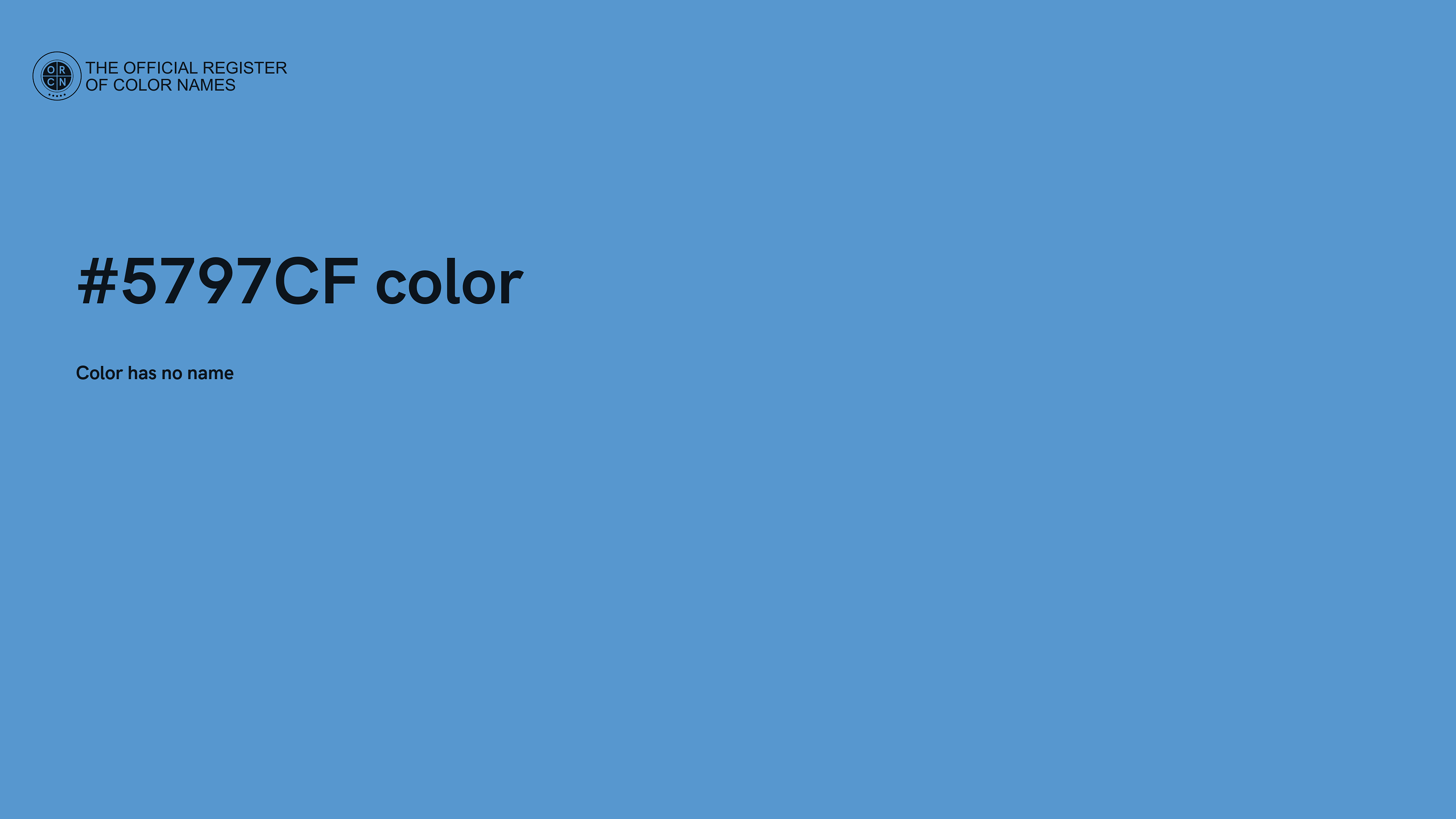 The digital color HEX #5797CF belongs to the Azure Color Family featuring Moderate Saturation (Saturation Family) and Light (Brightness Family).