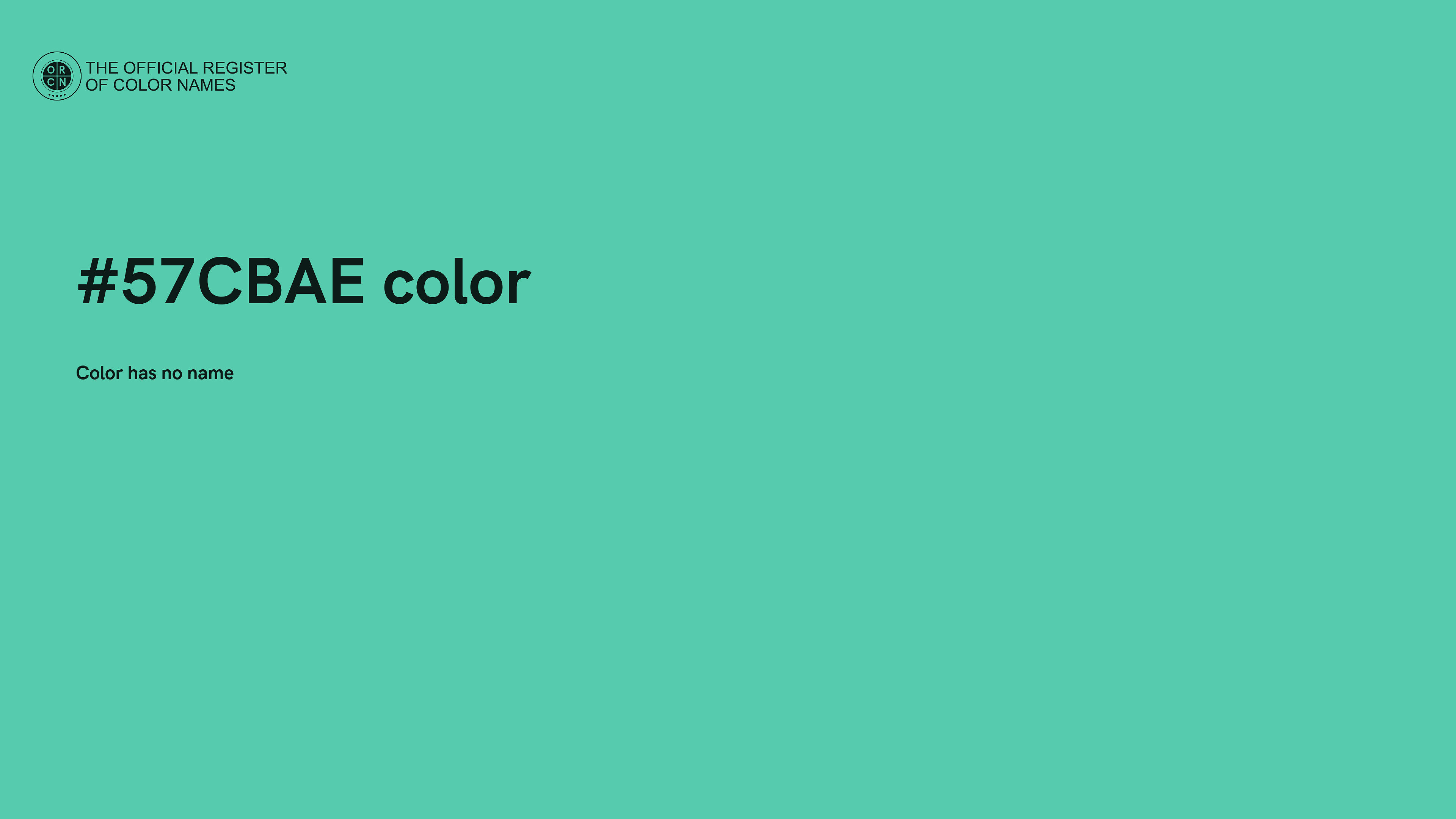 The digital color HEX #57CBAE belongs to the Cyan Color Family featuring Moderate Saturation (Saturation Family) and Light (Brightness Family).