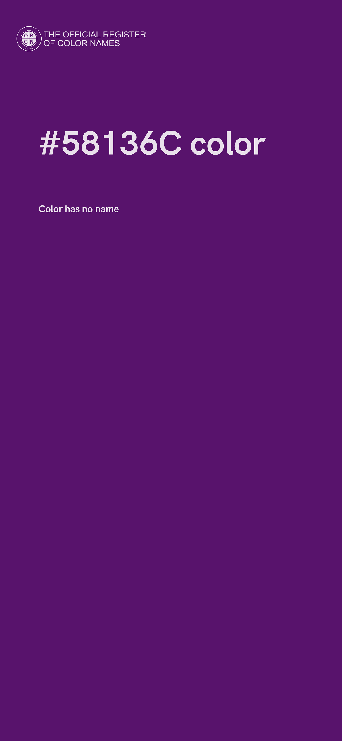 The digital color HEX #58136C belongs to the Magenta Color Family featuring High Saturation (Saturation Family) and Neutral (Brightness Family).