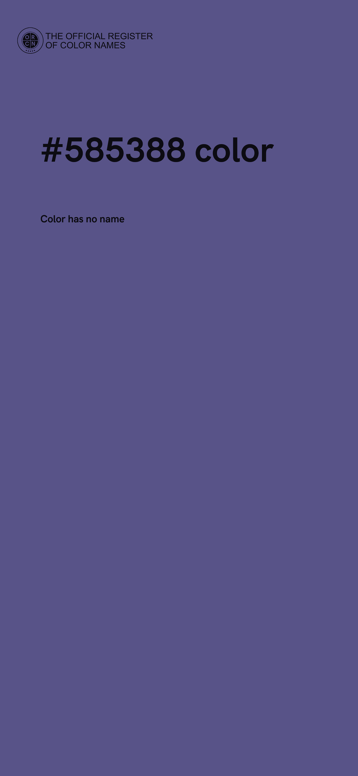 For printing in non digital world, #585388 is represented in CMYK as 19 Cyan, 21 Magenta, 0 Yellow, and 47 Black (Key) (C:19 M:21 Y:0 K:47).