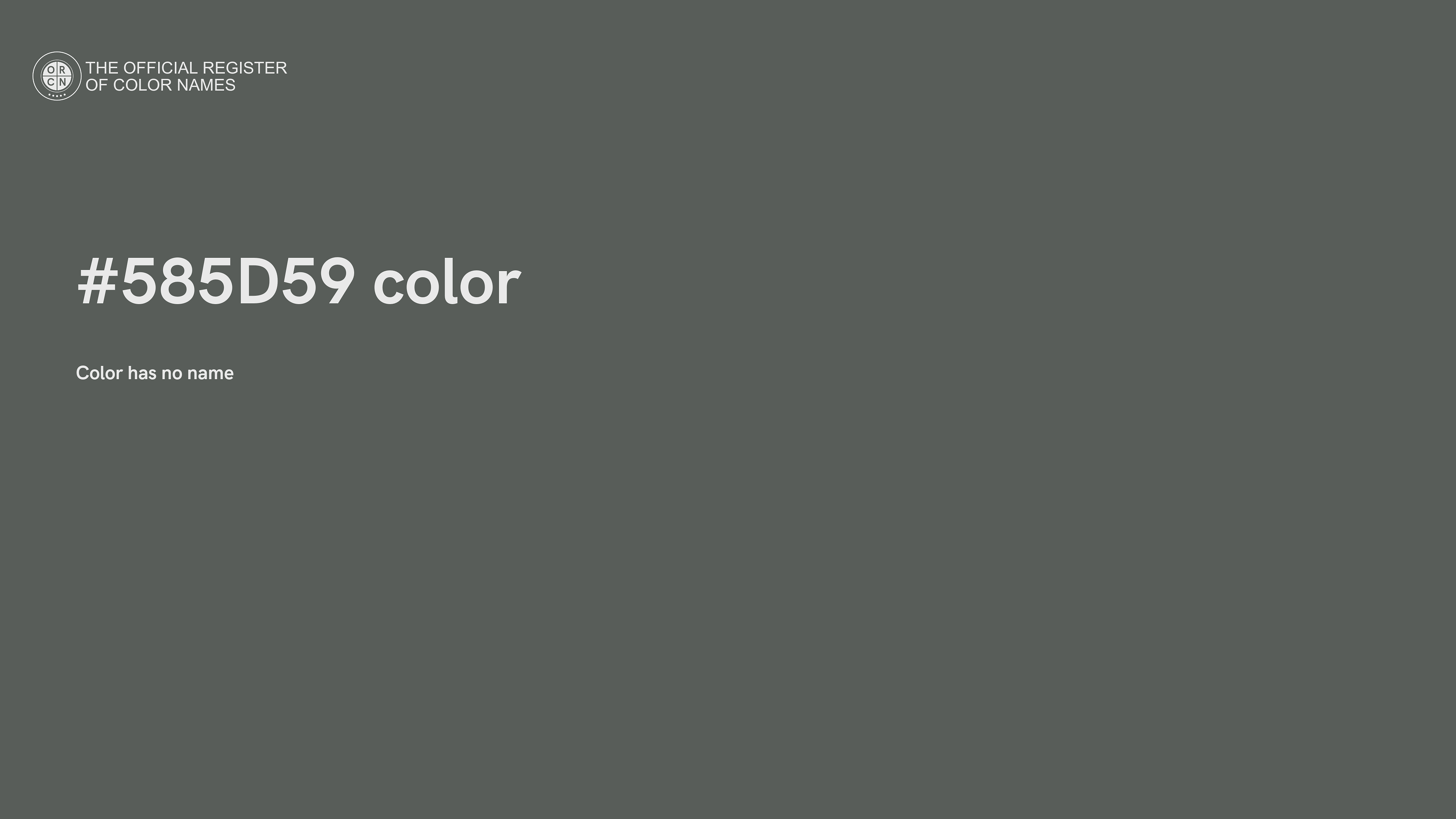 The digital color HEX #585D59 belongs to the Green Color Family featuring Desaturated (Saturation Family) and Neutral (Brightness Family).