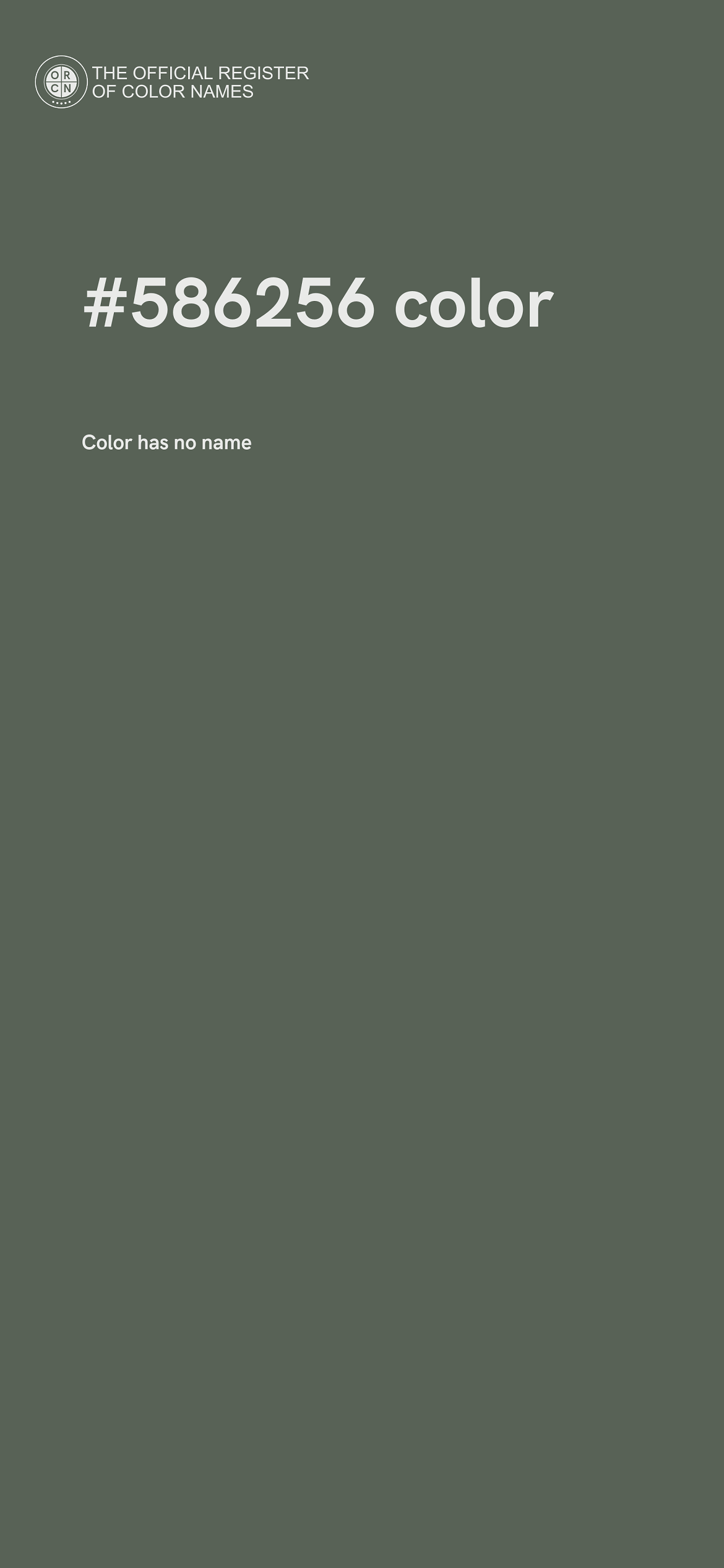 The digital color HEX #586256 belongs to the Green Color Family featuring Desaturated (Saturation Family) and Neutral (Brightness Family).