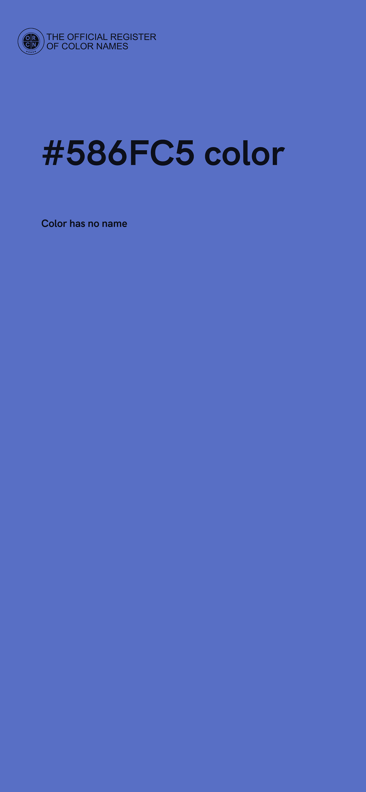 For printing in non digital world, #586FC5 is represented in CMYK as 43 Cyan, 34 Magenta, 0 Yellow, and 23 Black (Key) (C:43 M:34 Y:0 K:23).