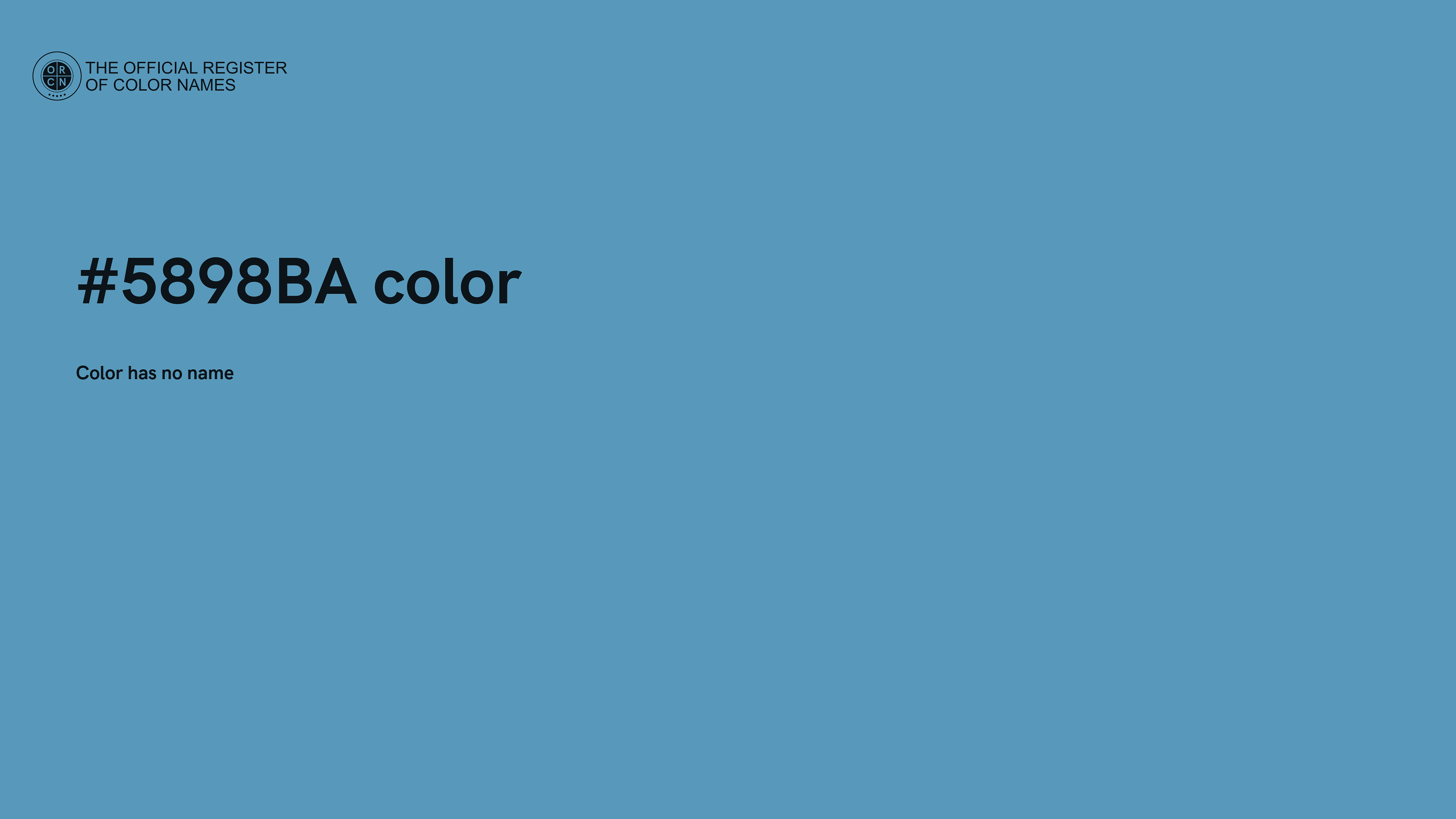 For printing in non digital world, #5898BA is represented in CMYK as 38 Cyan, 13 Magenta, 0 Yellow, and 27 Black (Key) (C:38 M:13 Y:0 K:27).